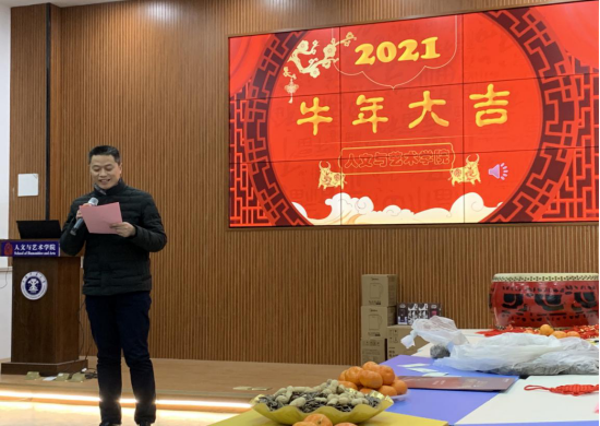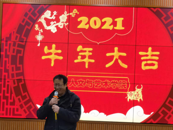 史修永院长精心盘点了人文与艺术学院成立半年多来,在教学、科研、学科建设、人才培养、师资队伍建设、社会服务、文化传承与创新等方面取得的的收获和喜悦。史院长强调,老师们在各自的岗位上,认真履行岗位职责,抢抓机遇,协同合作、奋发有为,喜获丰收、硕果累累;天道酬勤,回首过去难忘的一年,我们倍感欣慰和自豪;新学院、新起点、新形象、新作为;祝愿老师们元旦快乐、新年快乐、身体安康、阖家幸福、工作顺心。史院长指出,机遇蕴含精彩,实干成就伟业。2021年是国家“十四五”开局之年、建党100周年,站在新的起点上,学院将着力提升管理水平和师德师风建设,为老师创造更加优质的办学环境和服务水平;着力加大师资引进和建设,吸引越来越多的德才兼备的优秀教师加入学院,为青年老师的成长和教师的事业发展提供更加有利的条件;着力加强学科和专业建设,以内涵和质量建设为中心,提升学科和专业特色和内涵发展,为实现立德树人、培育高质量的人才提供更加坚实的基础。