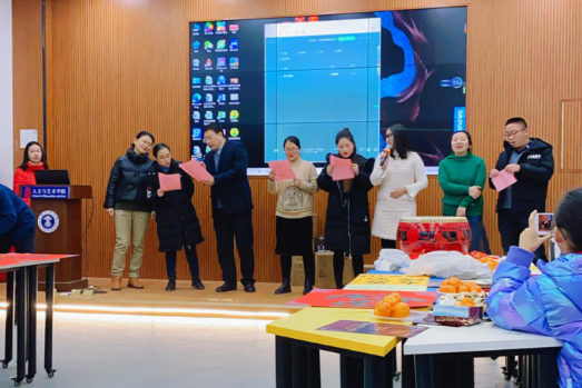 教职工新年联欢会中间,还进行了互动与抽奖环节,多位老师分别获得特等奖、一等奖、二等奖和三等奖;部分奖品赞助单位美的天誉公司的负责人也来到现场,表达了新年祝福。此外,学院还为属牛的老师们赠送了本命年的小礼品,表达全体师生员工的美好祝愿。