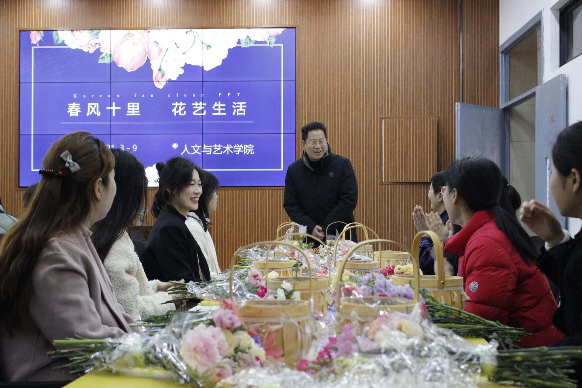 于文科楼A111会议室举办“春风十里,花艺生活”庆祝妇女节插花活动。本次活动邀请麻豆av