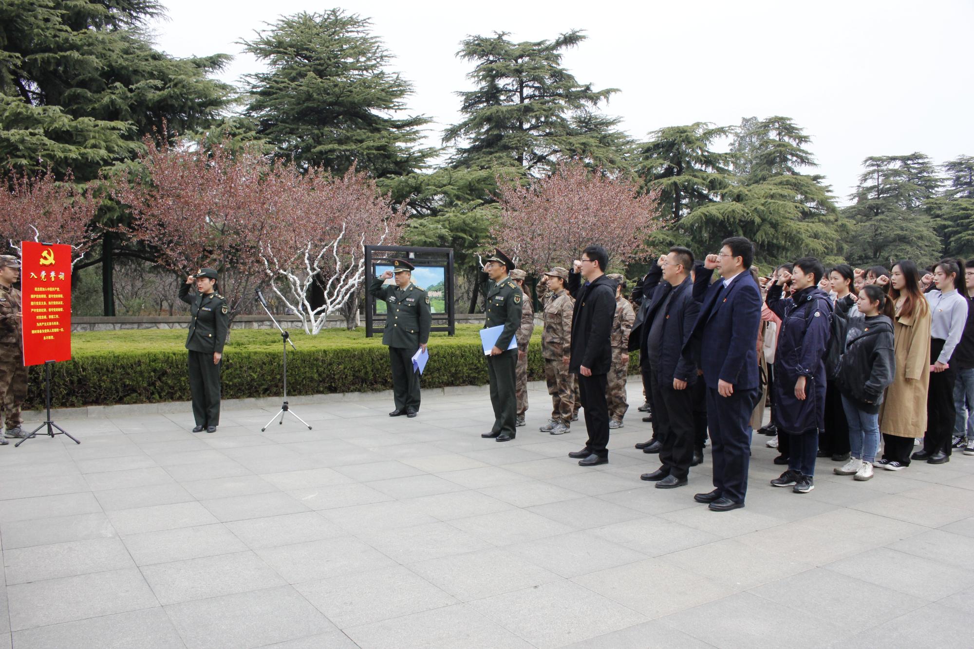 学生代表向亲历淮海战役和平津战役的茹梦武、耿尚德、郭朝武三位老干部献上鲜花,表达对他们崇高的敬意。接着,参与活动的全体人员在淮海战役烈士纪念塔前重温入党誓词。大家着装规范,佩戴党徽,庄严肃穆,集体宣誓,每一句誓言都感情真挚,饱含着对党的忠诚热爱。入党誓词的十二句话,句句千钧,概括了党对党员的基本要求,也概括了党员对党组织和党的事业应承担的政治责任。