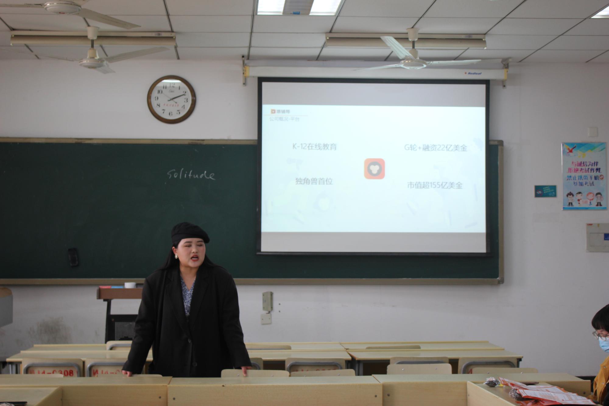 会上,“猿辅导”企业人力资源业务合作伙伴人李怡进行宣讲。首先,李怡从公司定位、旗下产品、经营理念等方面详细介绍了“猿辅导”的经营现状。她指出,“猿辅导”作为新兴的互联网产业之一,市场前景良好。随后,李怡以自身求职历程为例,告诫毕业生尽可能获取更多的企业“offer”,并强调“选择十分重要,更多的选择意味更多的道路。”除此之外,她还向毕业生们传授了求职面试的经验,并表明“积极主动”是面试官在面试过程中首要考虑的因素。最后,李怡通过“提问”,鼓励学子们积极表达自我,并为正确回答问题的学子送上小礼物。