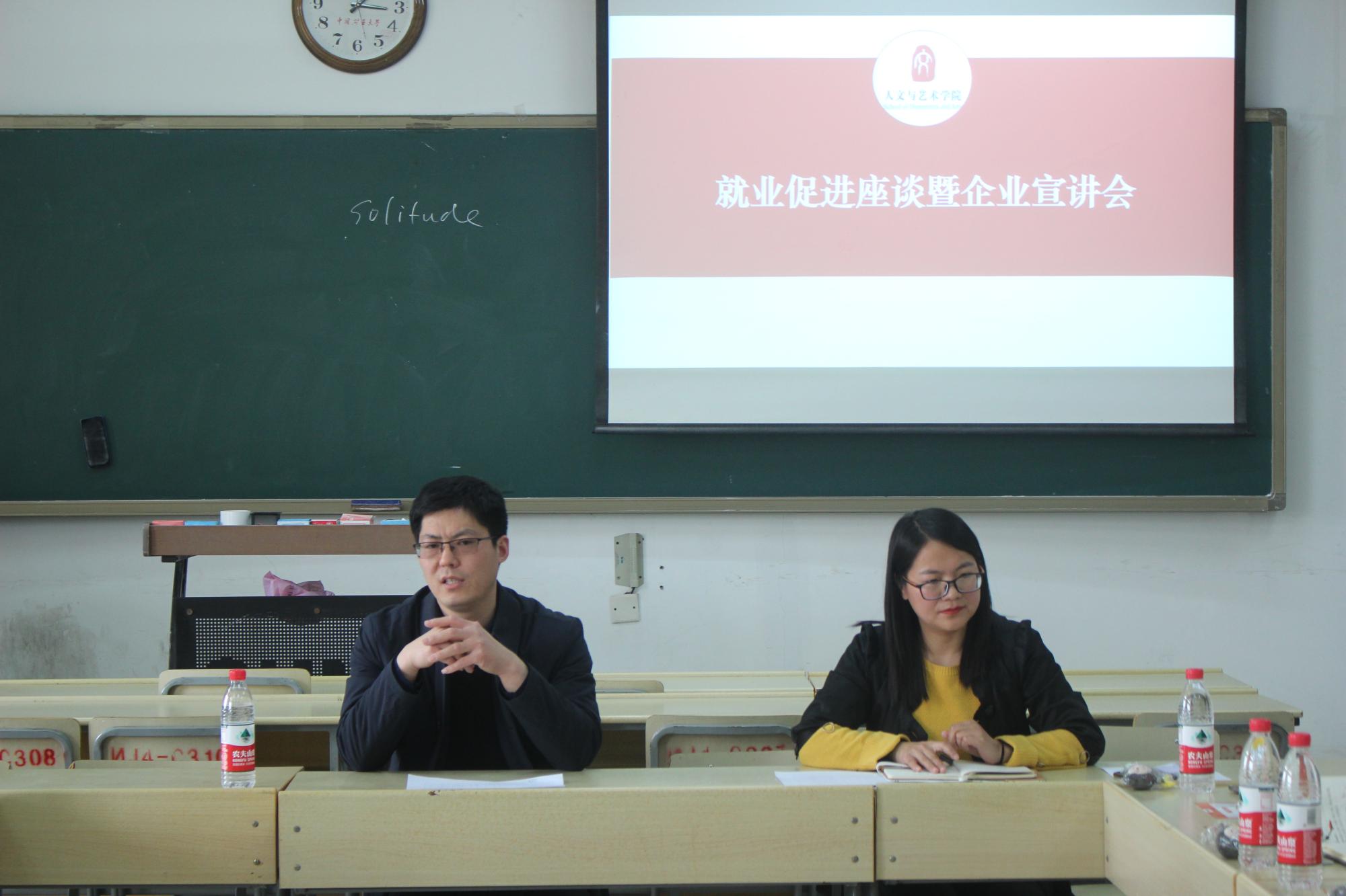 于博四C310教室召开2021年毕业生“就业促进座谈暨企业宣讲会”。院党委副书记丁恒星出席本次座谈会,17级辅导员李玉雪老师主持会议,毕业年级学生积极参与其中。