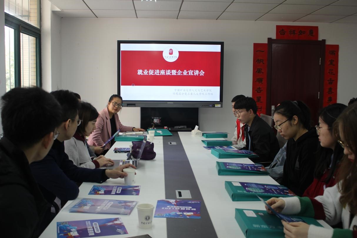 会议伊始,李玉雪老师强调当前考研及就业形势的严峻性,鼓励大家积极参与就业招聘会,提升个人能力素养。首先,由新东方徐州学校优能中学部教学经理胡平向大家介绍新东方教育机构的集团概况、人才优势、地区分布等内容,详细说明了入职后的福利待遇及个人发展前景,解答了大家最为关心的问题。接着新东方徐州学校三胞校区中学店长陈效宇介绍了入职经历及自身发展的情况,他作为矿大优秀毕业学子也深知同学们心中所虑,在轻松的氛围中与大家交流。新东方徐州学校优能中学部总监马冲与新东方徐州学校人力资源部总监李晓刚也回答了同学们关于如何面试等问题。何双秋老师作为专业教师也鼓励同学们积极参与到实习工作中,强调只有在实践中才能锻炼能力、增长见闻。