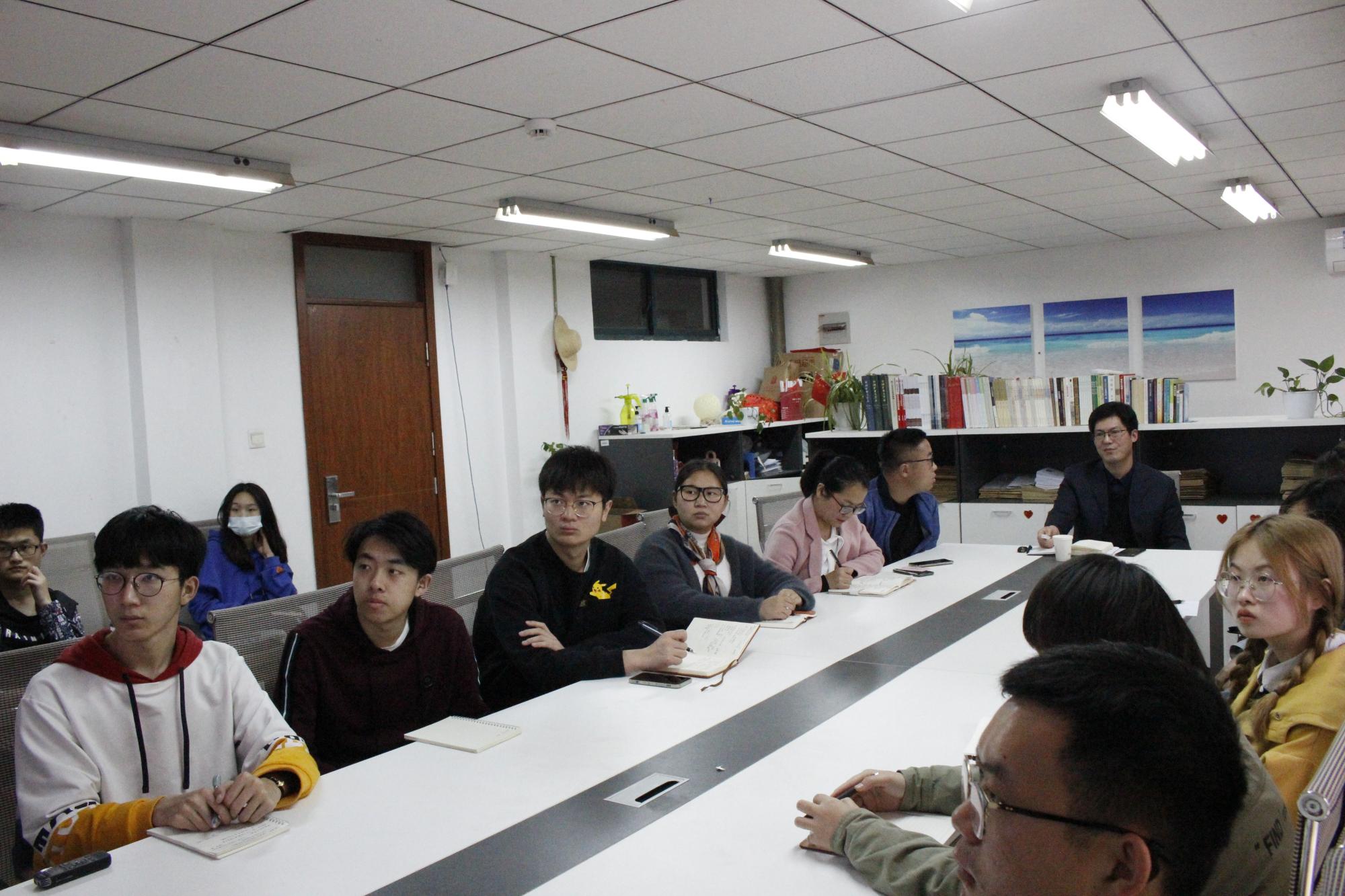 党委副书记丁恒星老师做党史学习教育报告,各年级辅导员老师和学生代表参加学习。