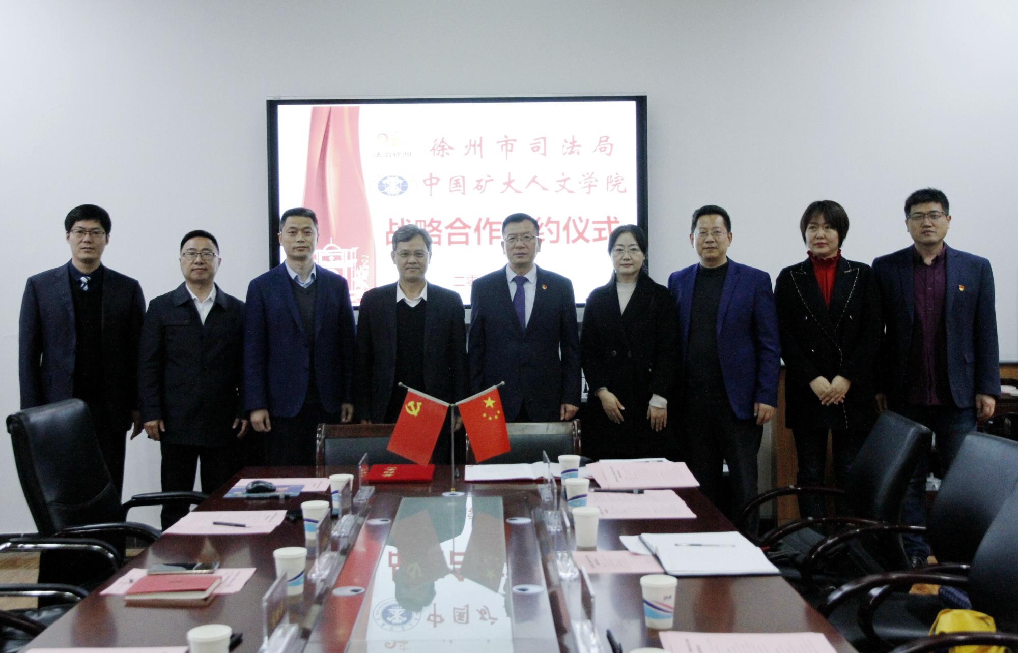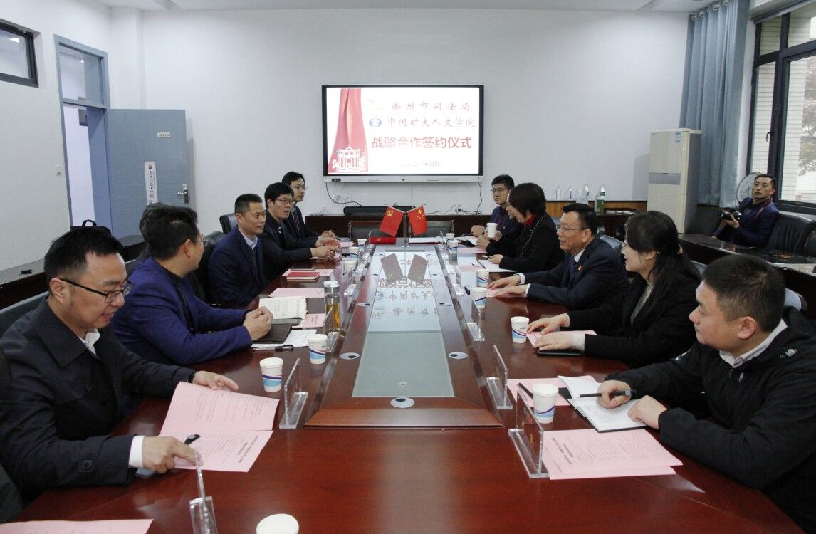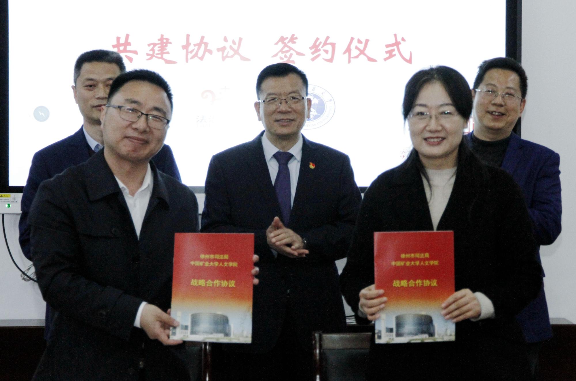 人文学院与徐州市司法局在矿大南湖校区,共同举行战略合作签约仪式,揭牌“徐州市法律明白人培训基地”、“徐州市企业合规法制研究中心”,宣布启动“徐州市《中华人民共和国民法典》万人培训活动”。