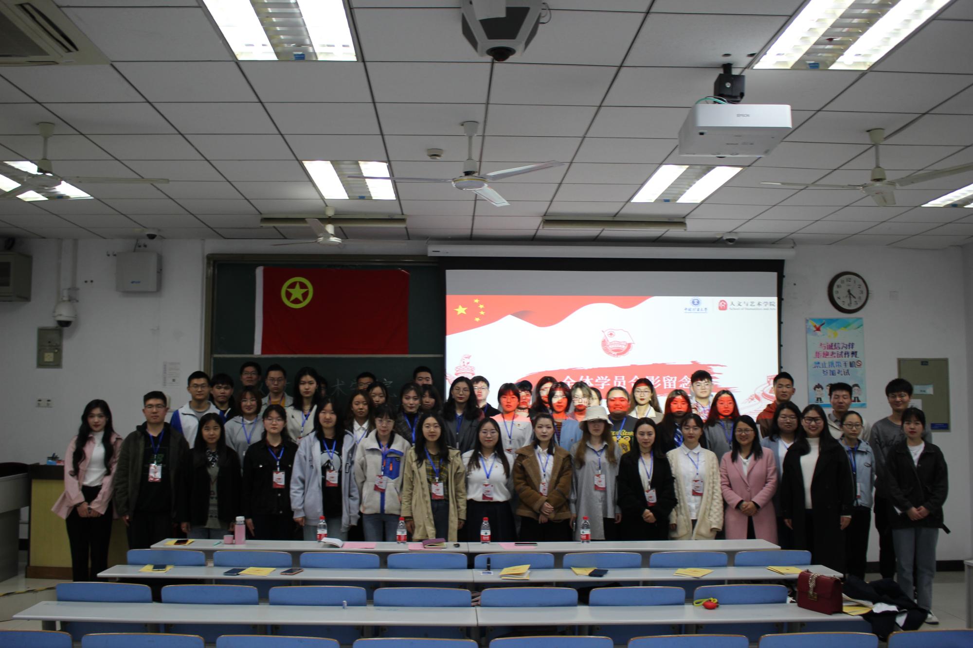 4月24日下午,人文学院于博学楼B302教室举办卓越青年第一期青马工程院级学员培训班开班仪式。院党委副书记丁恒星、学工办主任李玉雪、团委书记郭丽婉以及各年级专兼职辅导员出席开班仪式,院级青马班全体学员积极参加。本次仪式由院团委书记郭丽婉老师主持。
