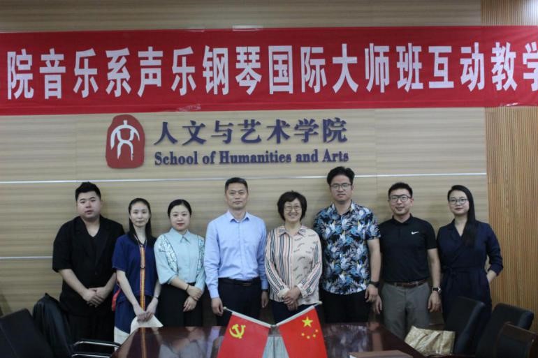 院长史修永、副院长刘振、国际合作交流处副处长陈靓、学校教学督导尹文萱教授、音乐系主任范潇文,音乐系教师宋国旭、刘子昱、董德莅临现场和部分音乐系学生代表共同参加启动仪式。