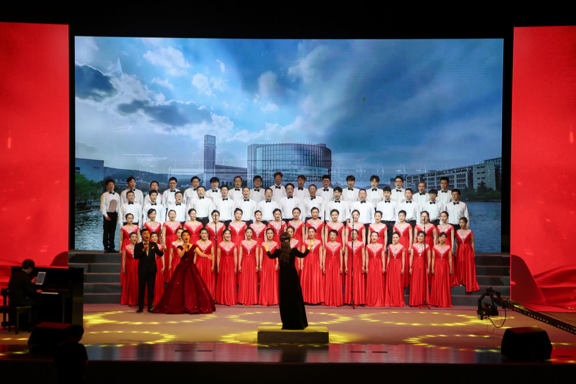 教职工在音乐系朱文老师的指挥和宋国旭、刘子昱老师的领唱带领下,用精彩的演出展现了中华民族生生不息的顽强精神,表达了对伟大祖国的真挚情感和深情祝愿,在比赛舞台上绽放光彩,获得“荣誉演出单位”称号。