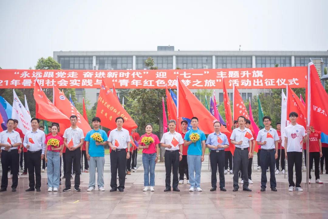 6月28日清晨,“永远跟党走,奋进新时代”迎“七一”主题升旗仪式暨2021年暑期社会实践与“青年红色筑梦之旅”活动出征仪式在南湖校区国旗广场举行。副校长曹德欣,校党委副书记蔡世华,学校相关部门与承办学院主要负责人,各学院党委副书记、团委书记出席仪式。2020-2021学年度社会实践省级评选获奖团队学生代表及2021年暑期社会实践校级重点立项团队和“青年红色筑梦之旅”活动的学生代表参加此次仪式,升旗仪式由人文学院、孙越崎学院、体育学院联合承办。校团委副书记孙洪洋主持升旗仪式。