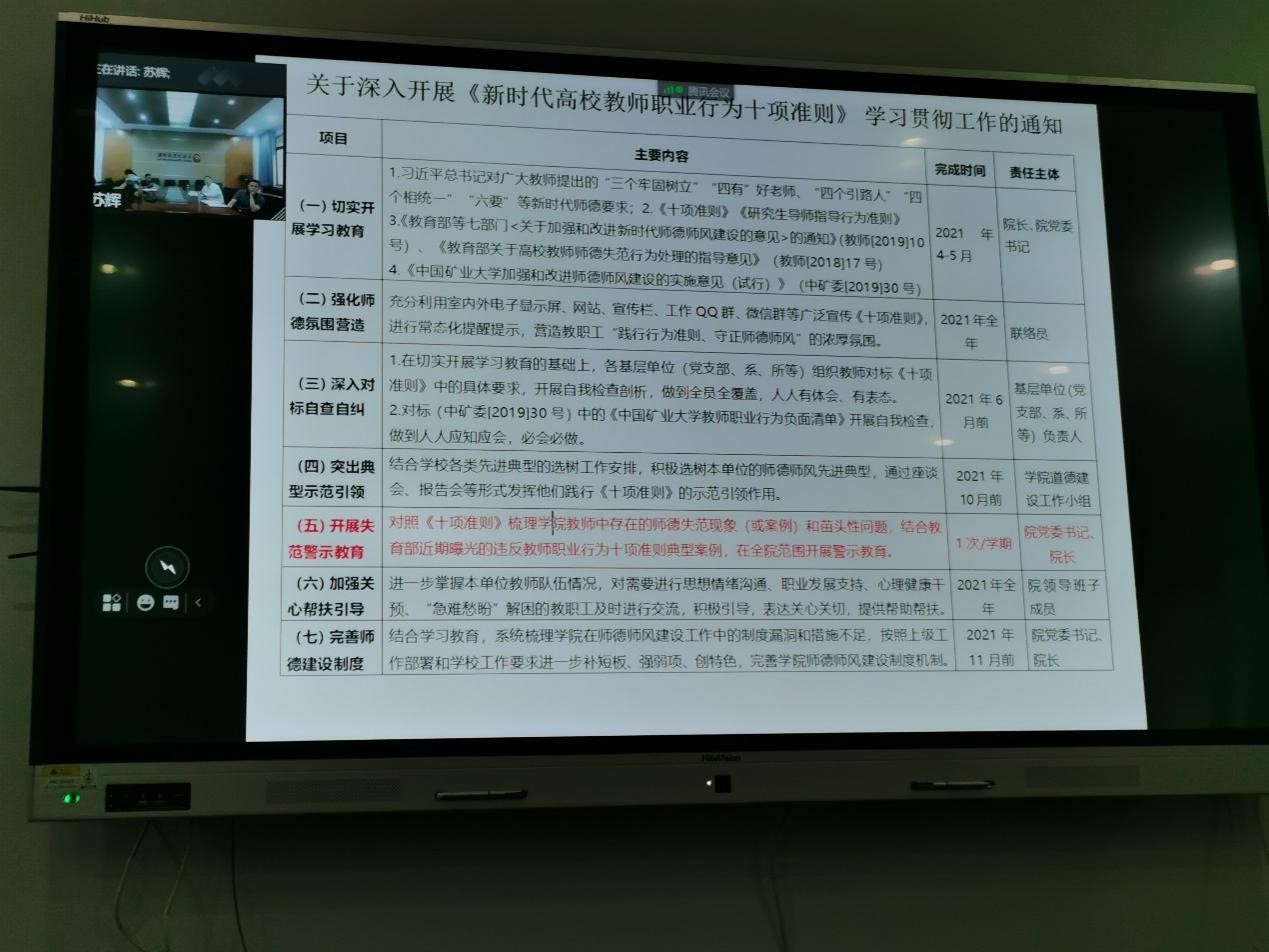 刘振副院长对《本科课堂教学工作规范》中关于作业评阅、平时成绩和成绩录入的规定和《本科教学事故认定和处理办法》中关于教学事故认定、处理办法的规定进行了宣讲,并对开学初的线上教学工作的具体要求进行了提醒。