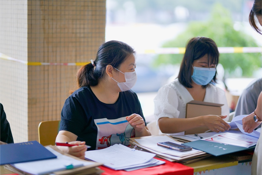 老师在帮助学生办理报道