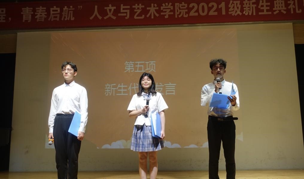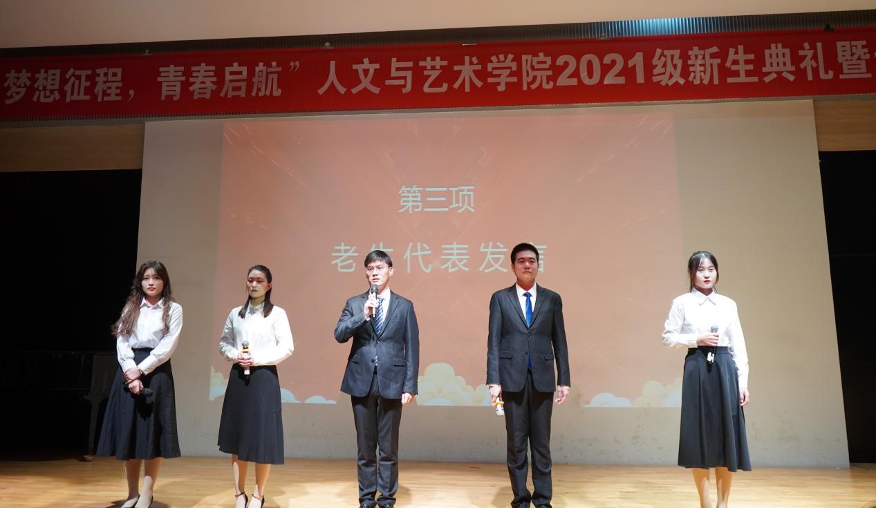 10月17日晚7点,人文学院于艺术报告厅隆重举行2021级新生开学典礼暨迎新晚会。学院党委书记方跃平、院长史修永、副院长李广文、汤道路以及教授代表、2021级新生班主任、全体专兼职辅导员出席了活动。开学典礼环节由学院党委副书记丁恒星主持。