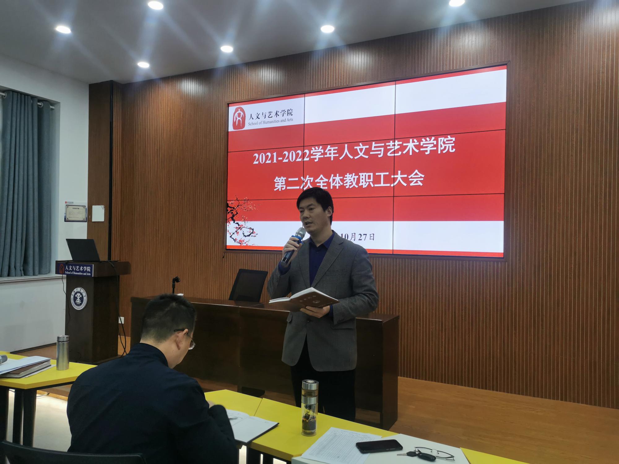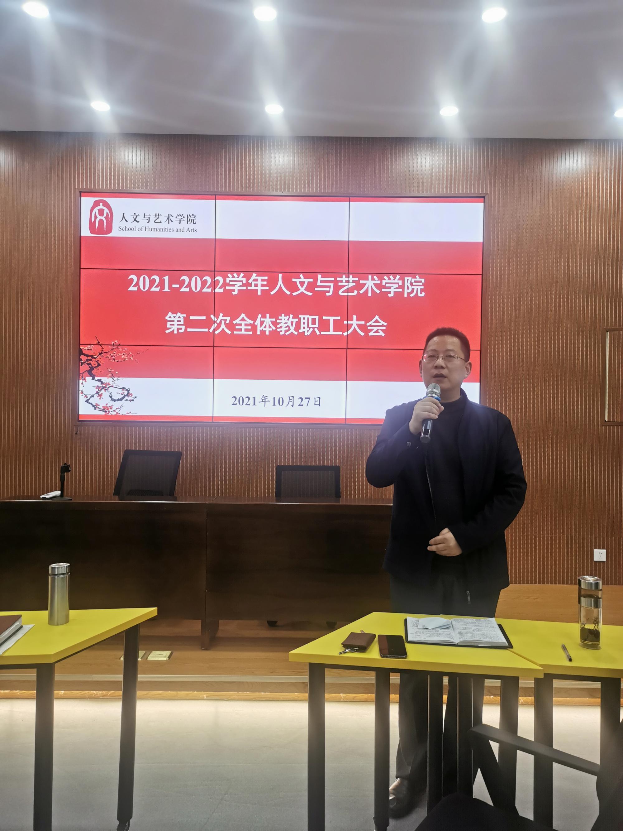 于文科楼A111召开本学期第二次全体教职工大会。学院党委书记方跃平、院长史修永、党委副书记丁恒星、副院长李广文、汤道路、刘振出席,麻豆av