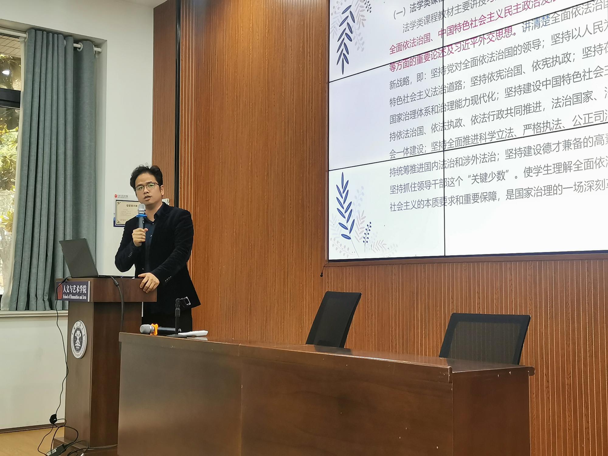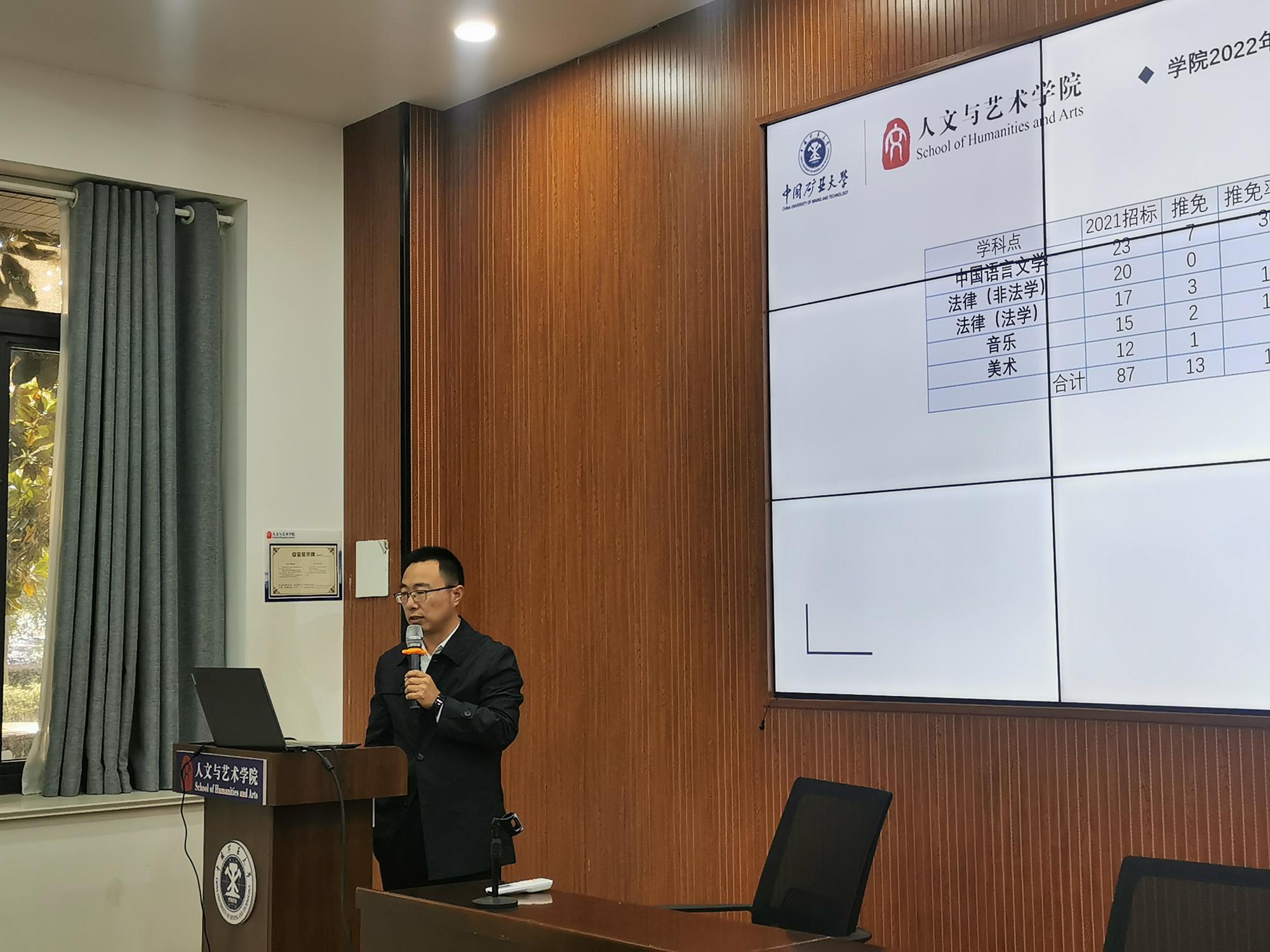 学生就业情况进行了说明。汤道路副院长对全体教师就学院2022年硕士研究生招生情况、学院研究生和导师双选情况以及2022年国家社科基金申报规划进行了相关通报。随后,刘振副院长以《习近平新时代中国特色社会主义思想进课程教材指南》为题,向全体教师介绍了教材相关方面的要求,并对近期的教学工作安排进行了提醒。