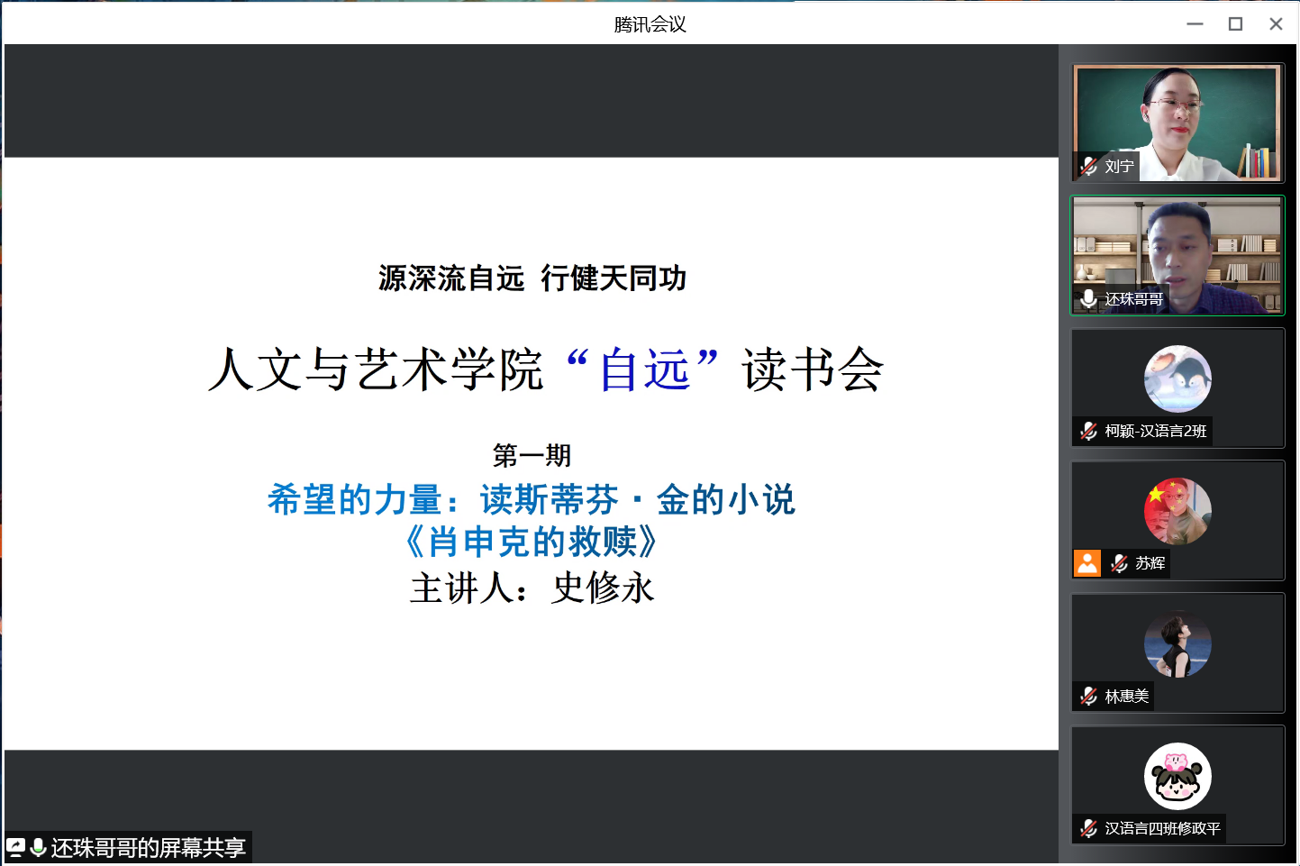 刘宁副书记在活动总结中指出,《肖申克的救赎》写的很励志,很振奋人心,结合当前疫情下的我们每一个人,学习和生活可能遇到了许多困难,都应学习小说主人公安迪的平和心态,心怀希望去追求,与所有的美好不期而遇。与会同学积极回应、热情互动,在老师的带领下深入了解了这部小说,在如何透过表层文字理解作品的精神价值、联系现实对自我理想价值进行反思等方面得到了深刻启发。