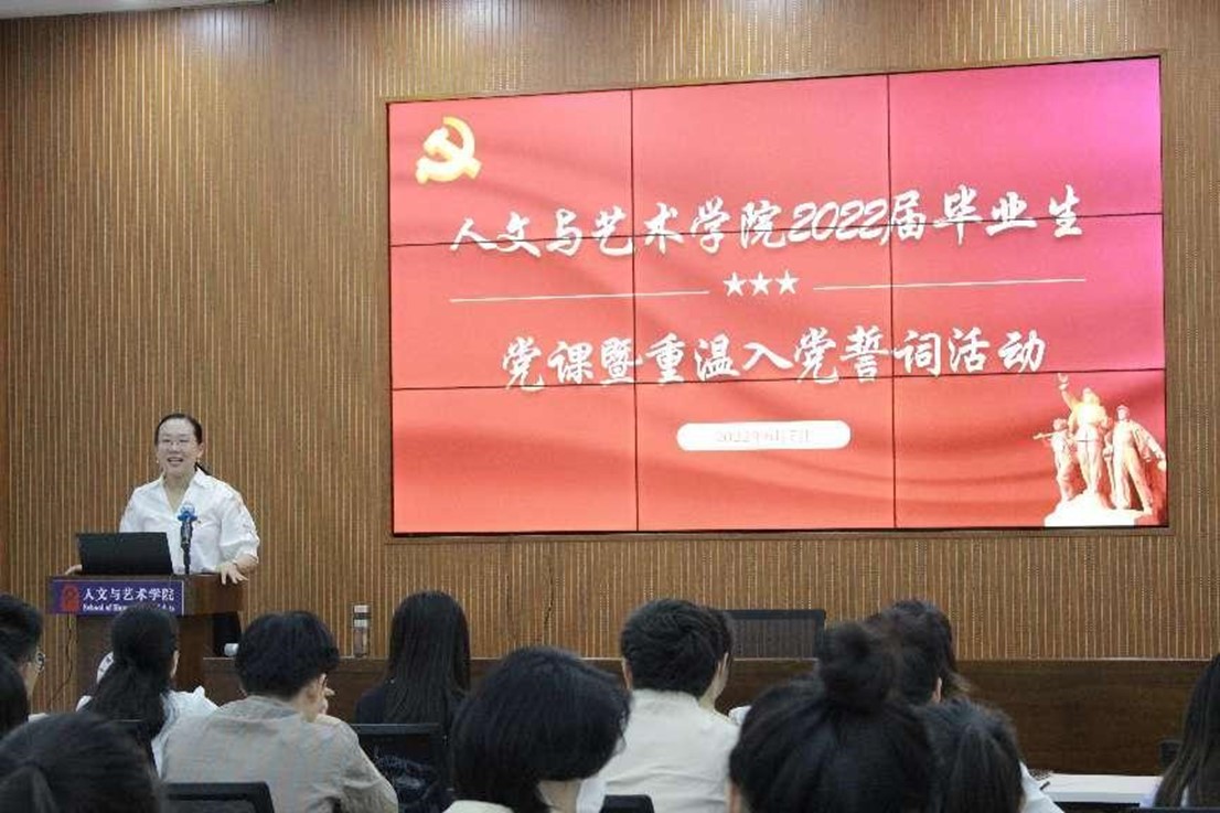 在文科楼A111会议室举办2022届毕业生党员专题党课暨重温入党誓词活动。活动由学院党委副书记刘宁主持。