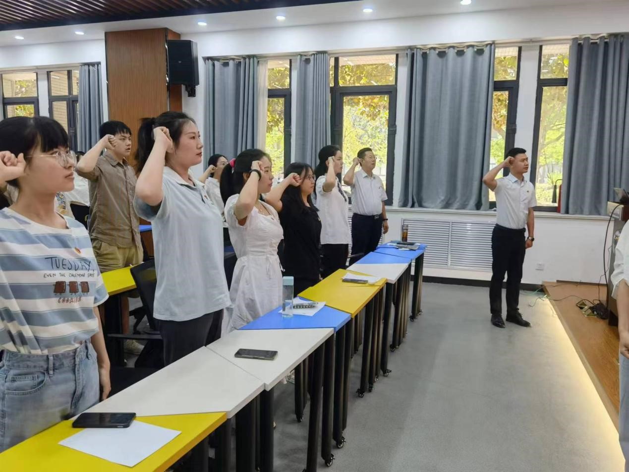 2022届毕业生党员专题党课结束后,方跃平书记、刘宁副书记和全体毕业生党员一起,在2019级研究生张彬朋同学的领誓下,重温了入党誓词。