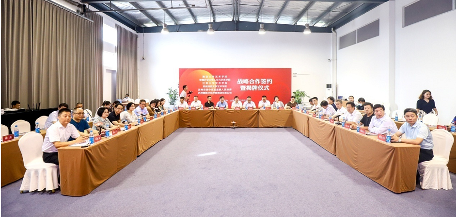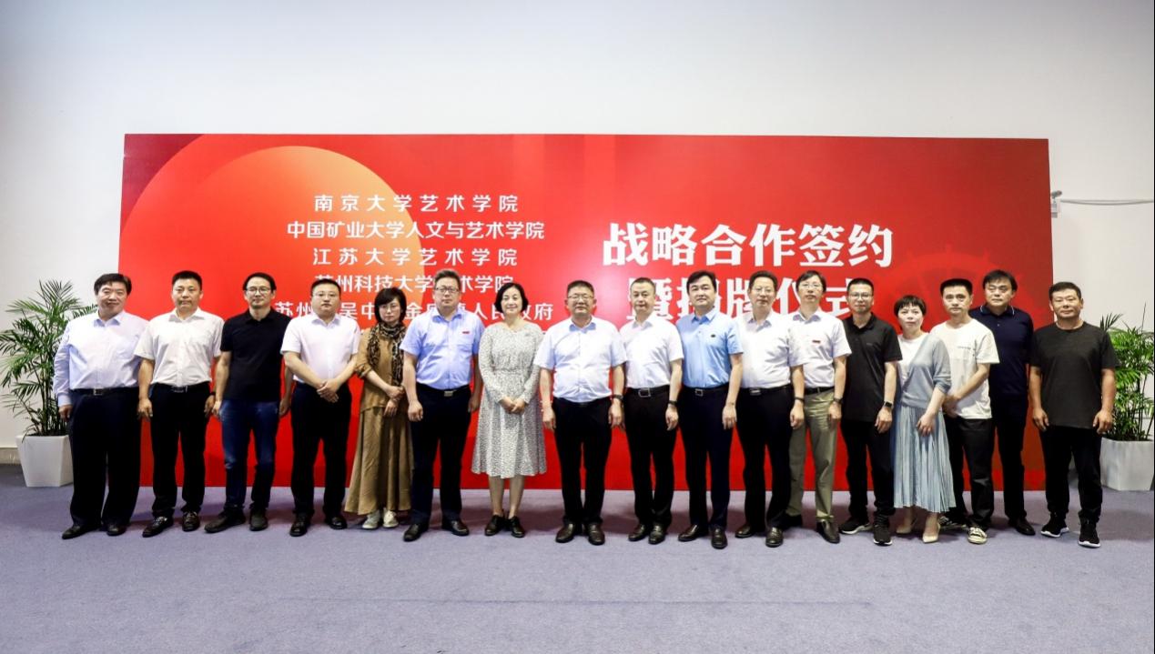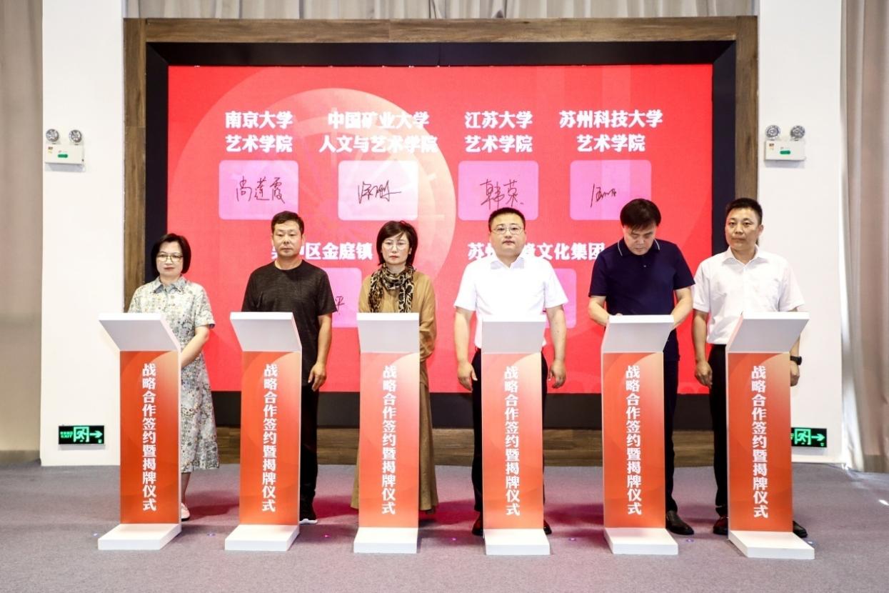 、江苏大学艺术学院、苏州科技大学艺术学院、苏州市吴中区金庭镇人民政府、苏州麒峰文化发展集团有限公司共同签订“政府、学校、企业三方战略合作框架协议”。“政校企”三方将以艺术为笔,加快绘就地景天成情感共鸣的“艺术岛”。