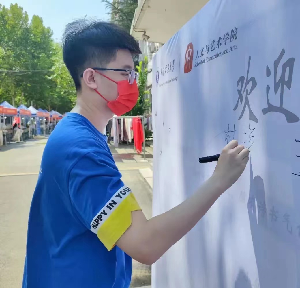学院在迎新站布置了签名墙和“人文高地 艺术殿堂”小景。在志愿者的引导下,新生们带着父母的叮嘱、求知的热情和对未来的憧憬在签名墙上签上自己的姓名。他们手持“中国矿大我来了”“I love 麻豆av