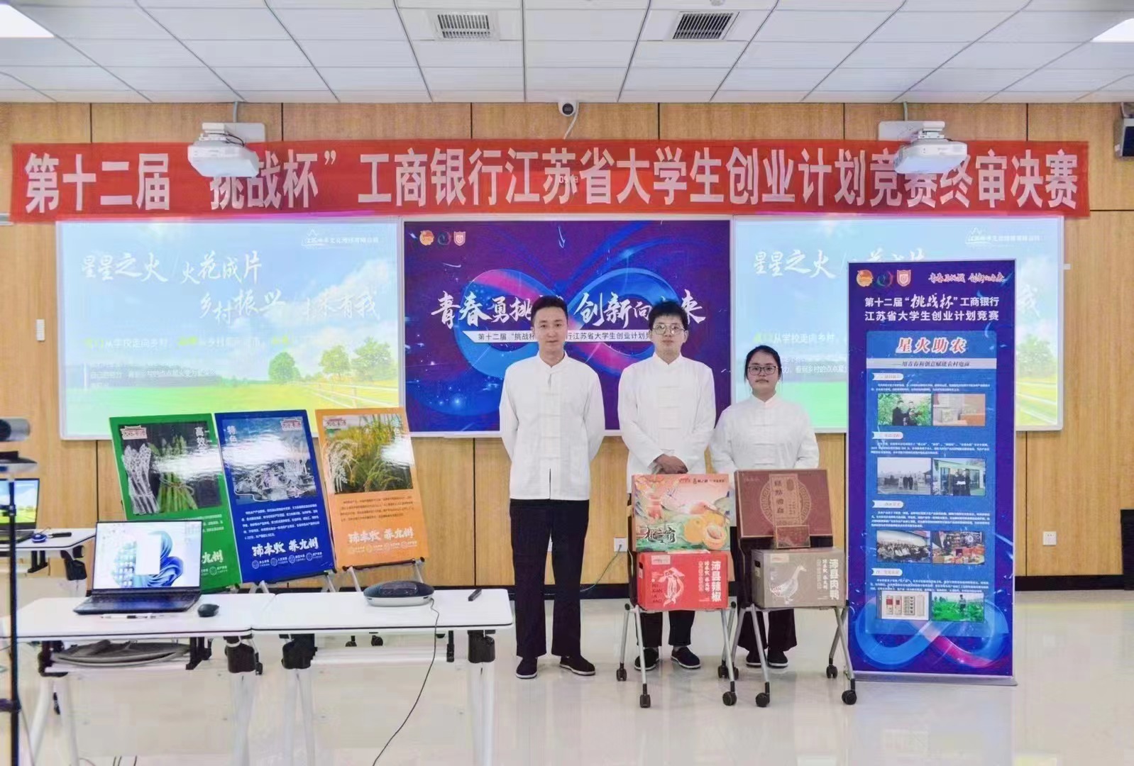其中,由曹洪洋、杨绍金、赵迪斐、郭宝光等老师指导,刘宇豪、王旭东、刘广义、杨兆龙、林星宇、左渝睿、刘艳萍、王悦桐、钱帅阁等同学完成的项目《星火助农——用青春和创意赋能农村电商》获得银奖。该项目立足于农业领域,为三农提供品牌设计升级、新媒体运营、电商销售及培训等全链条农产品解决方案,旨在通过全系列、高联系度的设计、运营以及终端销售,为农村发展贡献星火之力。目前,该项目与4个县级政府、30个镇级政府签订合作协议,已打造农产品品牌30余个,累计销售额350万元,开办新农人培训50余场,带动相关就业人才1230人。