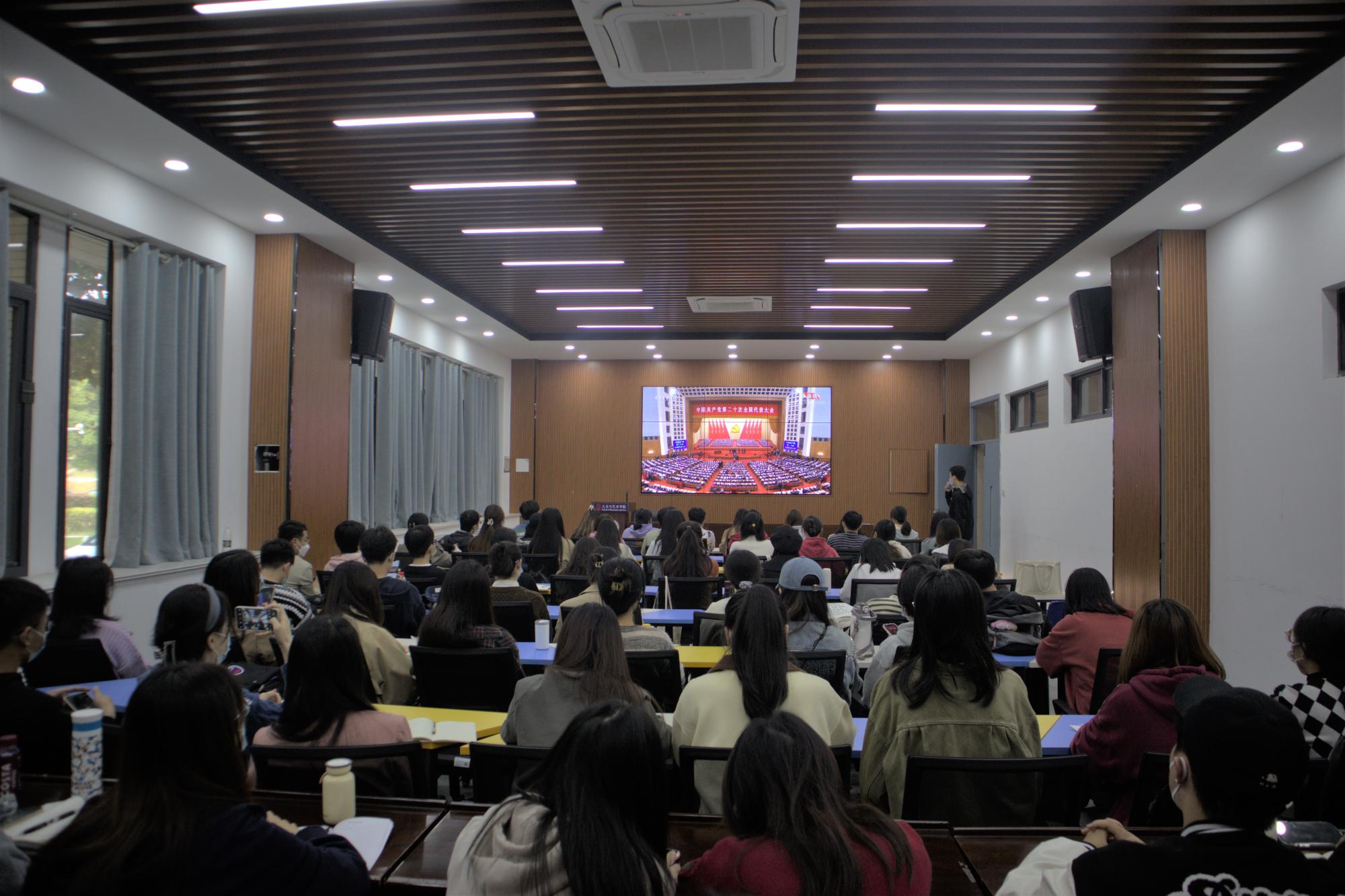 党委中心组、党员学生、团学青年等140余人分别在文科楼和竹苑党工委收看实况直播。学院更多师生通过网络、电视、移动终端等进行观看。