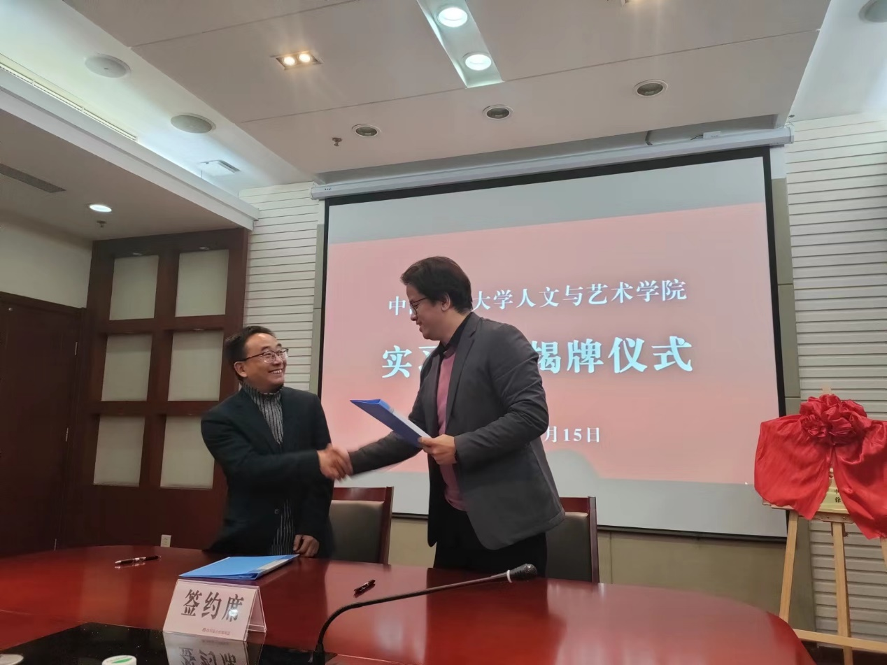 院长史修永和徐州报业传媒集团副总编辑王斌共同为共建基地挂牌。