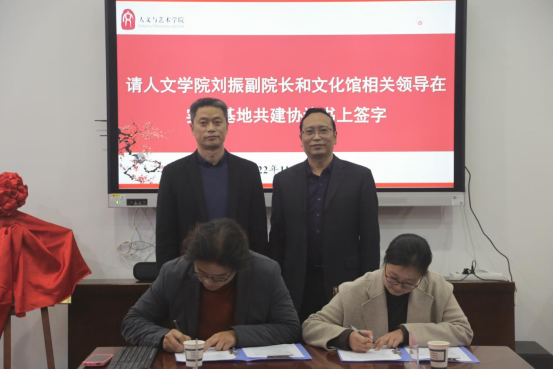 副院长刘振和徐州市文化馆副馆长周艳在实习基地共建协议书上签字,麻豆av