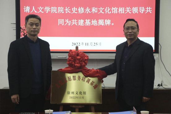 院长史修永和徐州市文化馆馆长杨孝军共同为共建基地揭牌
