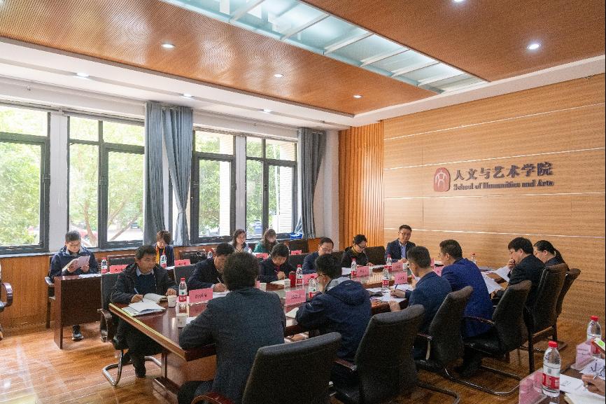 会议伊始,刘振介绍专家组成员及学院参会人员,并请方跃平书记致欢迎辞。方跃平书记对专家组来院考察表示欢迎,希望各位专家帮助学院梳理出发展中存在的问题,提出意见和建议,以帮助学院通过审核评估工作激活动力、破解难题,切实推进学院各项事业不断进步。随后,方跃平书记向专家组介绍学院的基本情况,他将学院的学术架构概括为“五四四三”,即五个系部,四个硕士点,四个本科专业,三个学科门类。方跃平指出,人文学院是一个充满人文追求、饱含艺术气息的学院,也是不断创新发展、矢志追求卓越的学院。学院以实现“人文高地,艺术殿堂”为奋斗目标,以“德才兼备,全面发展,追求卓越”为质保理念,努力构建制度文化、组织文化、教风文化相结合的教学质量文化,努力做到了“以评促建、以评促改、以评促管、以评促强”,力争将学院建设成为特色鲜明,在相关学科有较大影响力的知名学院。习近平总书记在多种场合多次强调要发挥哲学、社会科学在融通中外文化、增进文明交流中的独特作用,传播中国声音、中国理论、中国思想,让世界更好读懂中国,为推动构建人类命运共同体作出积极贡献。学院将围绕“为谁培养人,培养什么人,怎样培养人”这一教育的根本问题和立德树人的根本任务,保障落实教学质量,努力培养德智体美劳全面发展,具有家国情怀,国际视野、宽大品格、人文特色的栋梁之才。