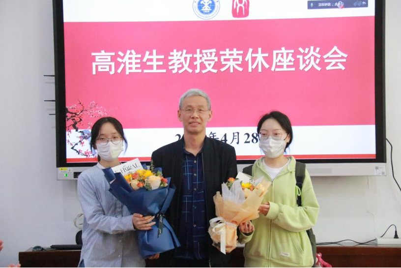 高淮生老师分享自己的人生经历与处事态度。“我读书的主要兴趣点落在先秦与魏晋南北朝时期,对‘道’和‘德’两字有很深的感悟,德顺万物之性,顺应自然,便是有德。”他说,不论是在教学讲台还是日常生活,自己都欣然接受这种状态,在展现美好的过程中感到快乐,产生自我认同感,“当你垂垂老矣的时候,那些能记起的人和事,才是你真正的生命”。他希望能在看破、放下、自在的过程中,收获更多美好故事。回忆自1984年7月入职到如今近四十年的时光,高老师庆幸能将职业和事业兼美,认为自己人生中最快乐的事就是当了一名老师,且当得自得其乐。他特别感恩能使自己走上讲台的政策、大背景,感谢曾经为他提供机会的学校、老师。高老师表示,他非常欣赏“轻轻地我走了”那种状态,但仍十分乐意继续给大家提供帮助,自己会一直关注学院的发展。