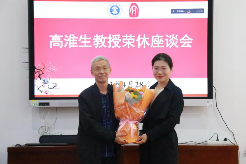 会议由史修永院长主持。方跃平书记为高淮生教授颁发荣休纪念品,代表学院党政、学院师生员工和广大校友向高老师表示崇高敬意,对高老师长期以来为学院改革与事业发展做出的积极贡献表示诚挚的感谢。方跃平书记指出,高老师是一位学术造诣深厚、具有广泛社会影响的专家,是一位学术风骨明显、具有深厚人文情怀的学者,是一位党性修养很强、具有执着大爱的老师。在近四十载的从教生涯中,高淮生教授以“四有好老师”作为人生追求,情系教育、献身教育、关爱学生、帮助学生,所体现出的高尚师德师风值得学习与传承。