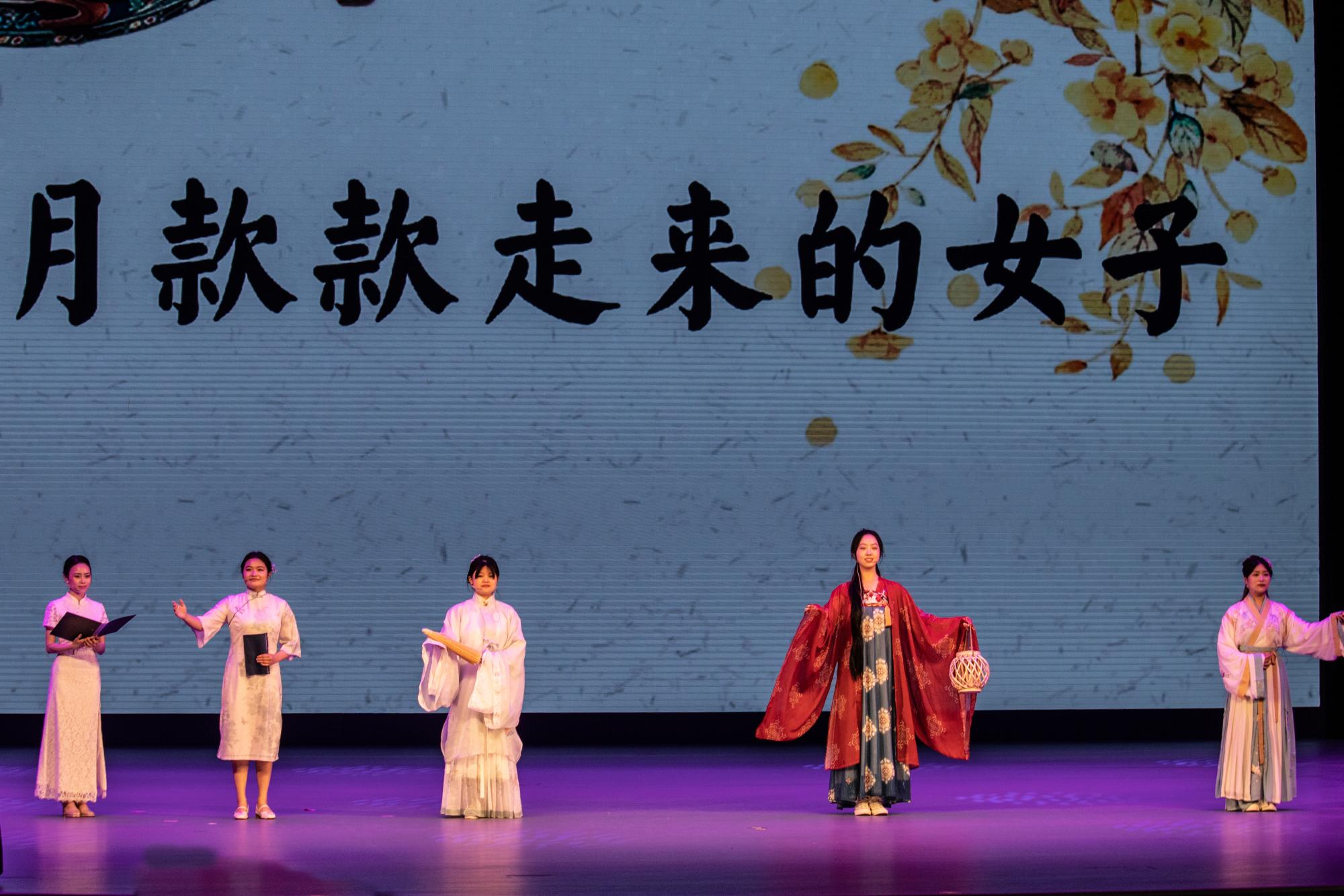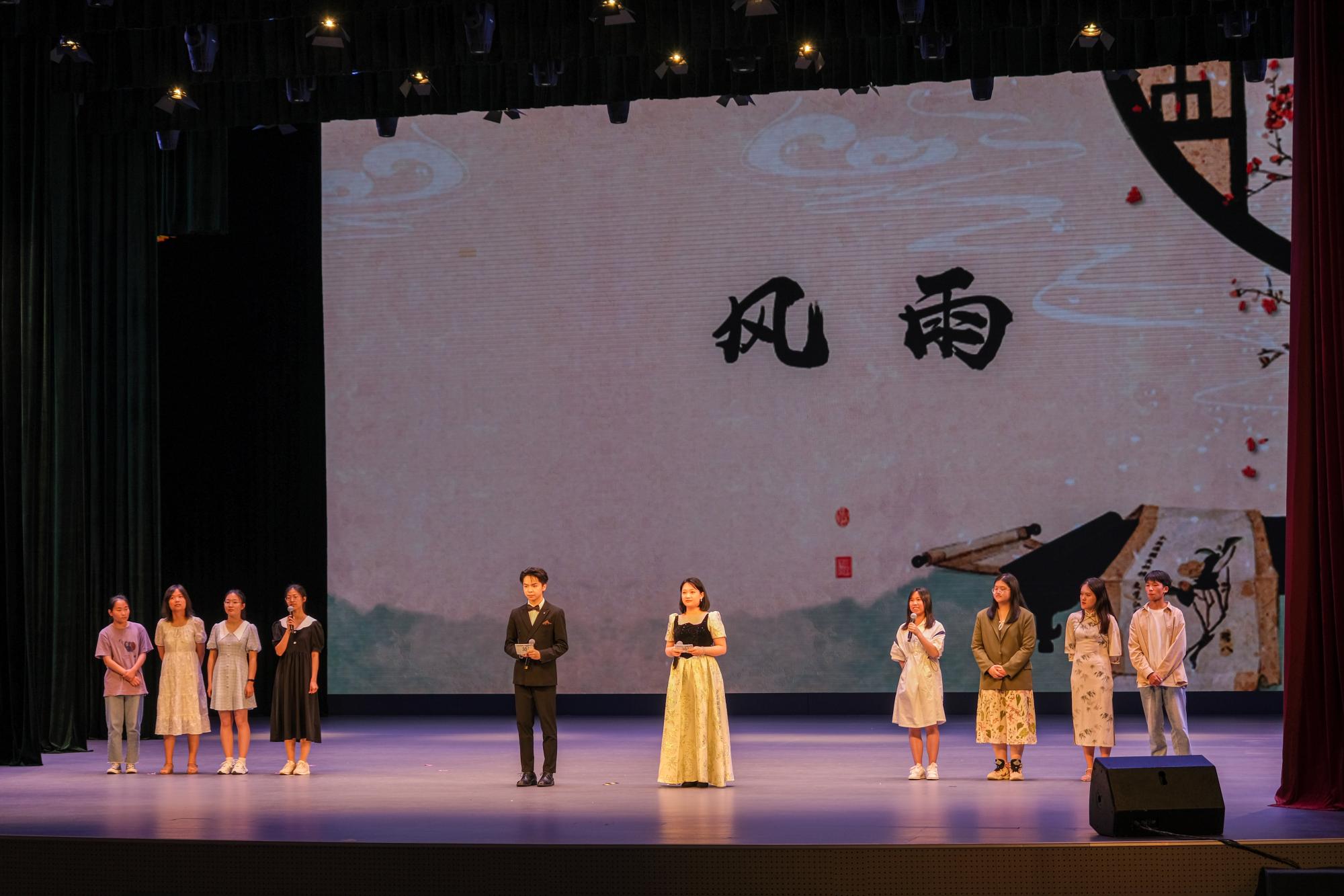 2023年大学生文化艺术节系列活动之“古韵千载颂风华,今朝砥砺谱新章”第十六届五月诗会汇报演出在明德礼堂举行。