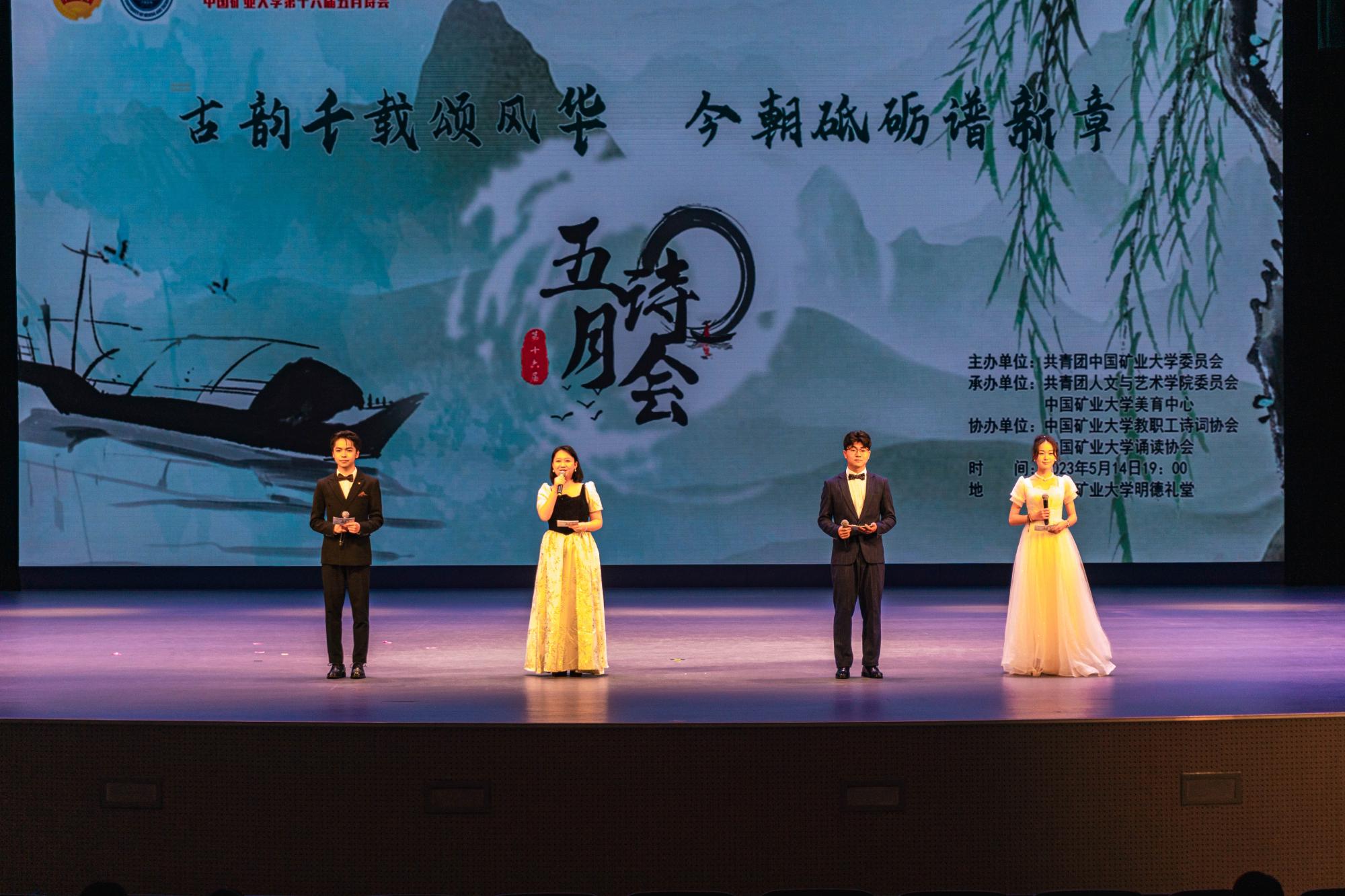 第十六届五月诗会,围绕学习宣传贯彻党的二十大精神、弘扬中华优秀传统文化、铸牢中华民族共同体意识、深化全民阅读创建“书香矿大”等主题设计了征文比赛、配音比赛、飞花令比赛和朗诵比赛等四个子活动。演出现场还设置了“楚韵汉风古彭城”互动答题和飞花令决赛两个环节,现场观众参与踊跃,充分展现了矿大师生良好的诗词修养与文化素质。