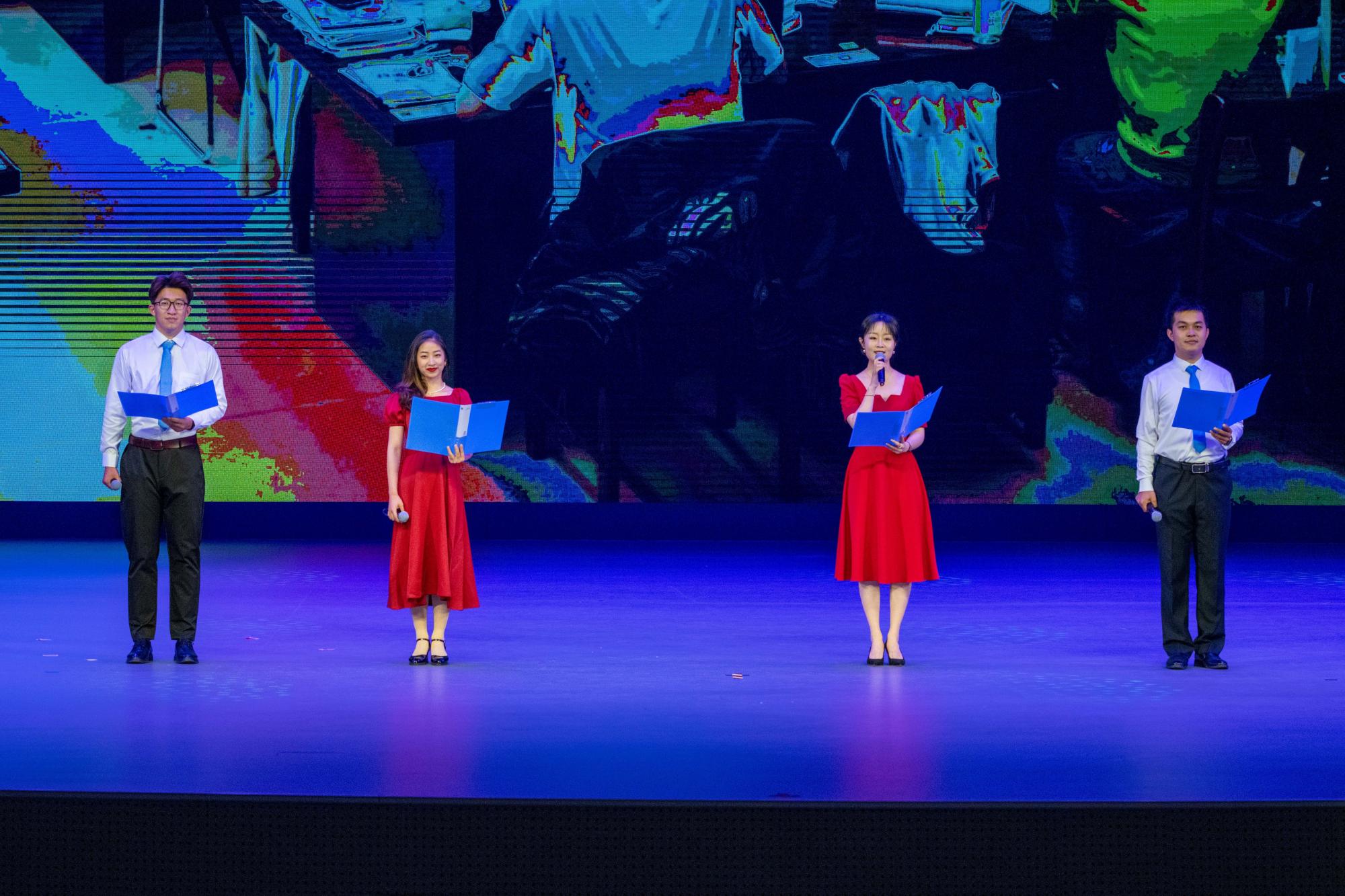 本届诗会汇报演出在叙事角度、节目内容和呈现形式等方面出新出彩,为师生们奉上了一道思想性、艺术性、观赏性俱佳的“文化大餐”。演出在舞蹈《天浴》中拉开帷幕,节目取材于藏族民间“沐浴节”呈现出的人与自然和谐并存美好画面,让观众在遏云响清、舞转回袖之间领略古典魅力。诗会以诗意纵览古今,聚焦新演绎。诗词咏唱《清平调》《声声慢》悦耳动听、余音袅袅,让经典再现原有的韵律、温度和情感;历史短剧《苏公炭》《汉书》《商鞅》将岁月长河中一幕幕鲜活的景象跃然展现于舞台之上。诗会以共情润心润人,展示新风格。朗诵《从五月款款走来的女子》以独特的视角,将谢道韫、李清照等女性文学家的故事娓娓道来,展示文学、生命与灵魂之美;《诗词里的家国》《唐诗里的中国》营造了丰富的意境,传递了千古诗意。诗会关照历史与现实,亦书写了新篇章。《我们的青春》以诗歌方式跨越时空,展现历久弥新的奉献精神和中华文化永恒的精神内核;配音《声罗万象》形式新颖生动,表演极具感染力;《读中国》《青春颂》则以诗诵情、以歌咏志,充分展现矿大师生昂扬奋发的精神面貌和矢志不渝的家国情怀。演出在女生小合唱《绿水青山》婉转悠扬的旋律中落幕。