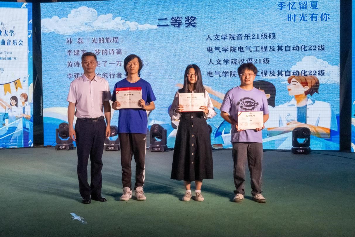 晚会伊始,学院党委书记方跃平、院长史修永和副院长李广文分别为获得学校首届校园原创歌曲征集活动一、二、三等奖的团队和个人颁发证书和奖品。