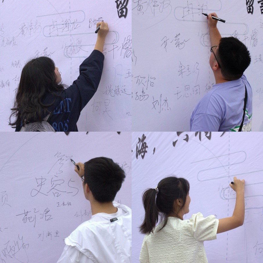 新生们满怀对即将到来的大学生活的无限憧憬与向往,在学院迎新站签名墙上签上自己的名字并和家人合影留念。