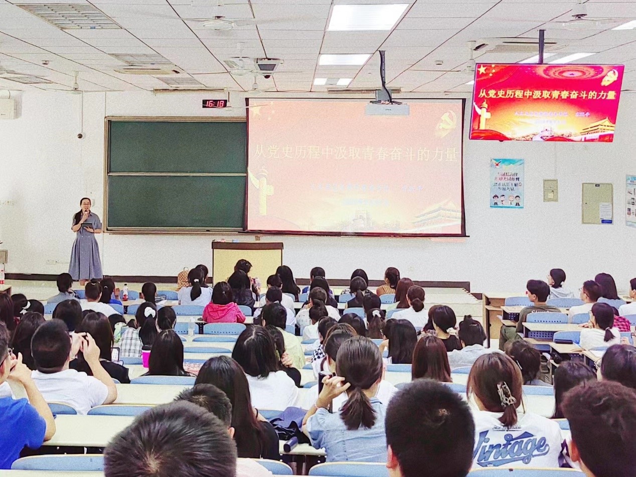 在博学楼1号楼C103教室开展入党启蒙教育活动。学院党委书记方跃平以《从党史历程中汲取青春奋斗的力量》为题,面向170名新同学开展主题讲座。讲座由学院党委副书记刘宁主持,2023级辅导员苏辉、梁钦杰和全体新生参加讲座。
