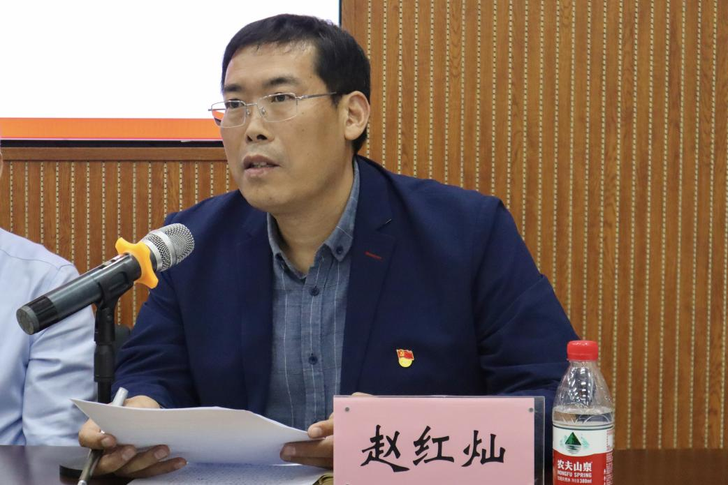 学院党委书记赵红灿主持会议、代表学院党委表态