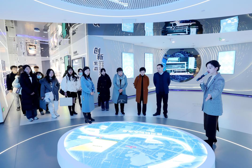 12月1日上午,周凌云老师、孙慧老师带领中文系2020级11名同学进驻徐州高新技术开发区管委会开展毕业实习实践活动。毕业实习启动仪式开始前,徐州高新技术开放区管委会陆启伟主任与李影主任带领师生参观徐州高新技术开发区展厅,沉浸式体验了徐州高新区昂扬上进的发展历程,大家纷纷表示受益匪浅。随后在多功能厅双方进行了中文系毕业实习启动仪式,陆启伟主任与中文系周凌云老师分别代表双方致辞。