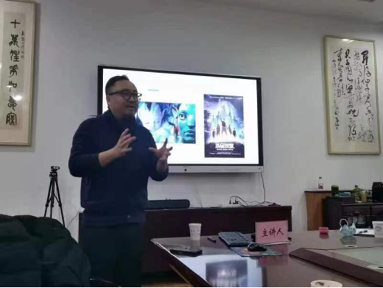 陈刚教授首先探讨“媒介生态学”的内涵和外延,开宗明义地指出随着数字媒介和信息技术的迅猛发展,媒介受众每时每刻都沉浸在由数字媒介环境所构建的虚拟世界之中。继而结合影视片段和图片,深入介绍了电影作为一种媒介,与其他媒介之间形如何形成相互依存的共栖关系,阐述当下数字媒介生态与中国电影创作之间的媒介互文、文化选择和影像重构等问题,为与会师生带来一场视听盛宴。