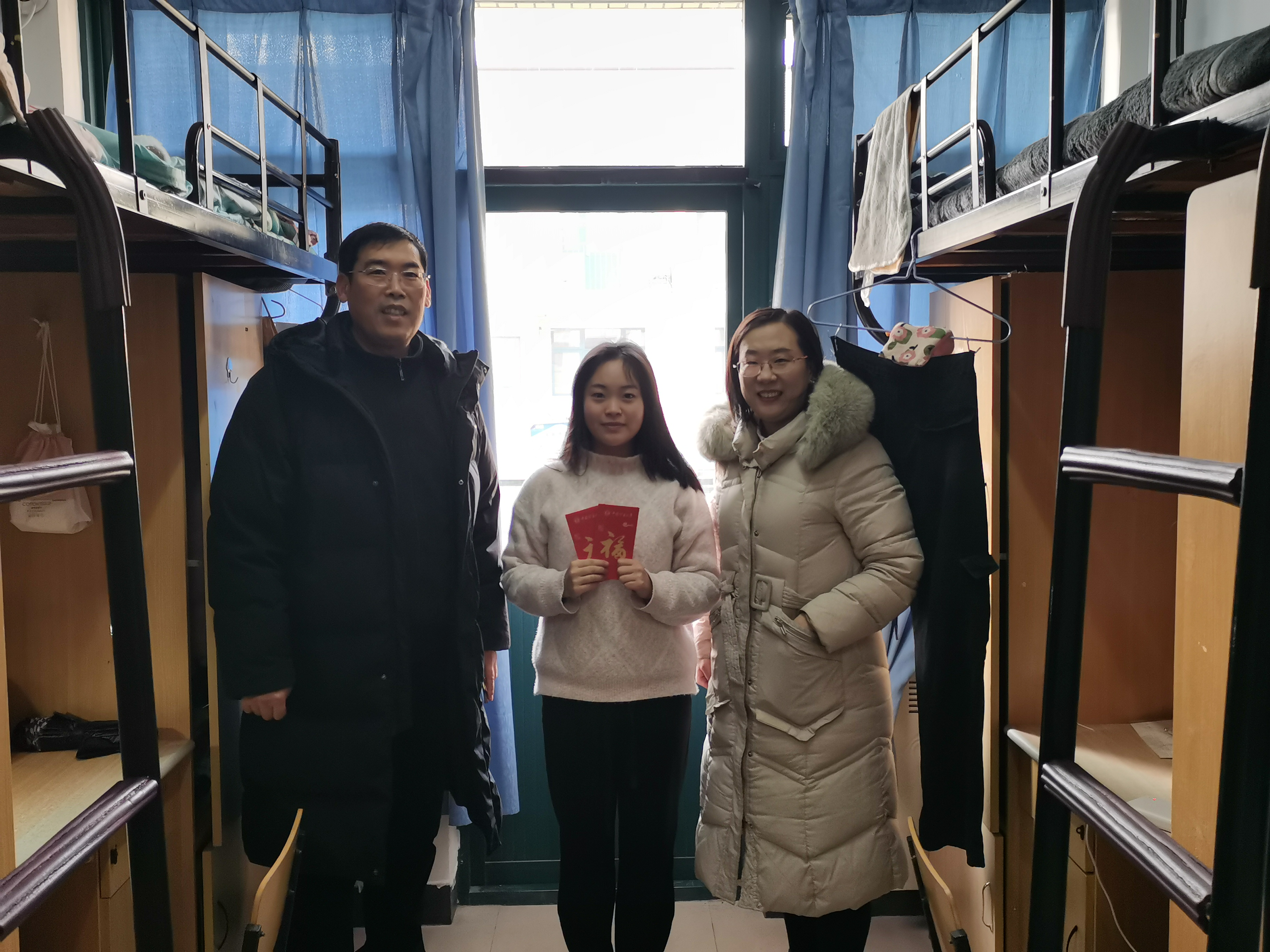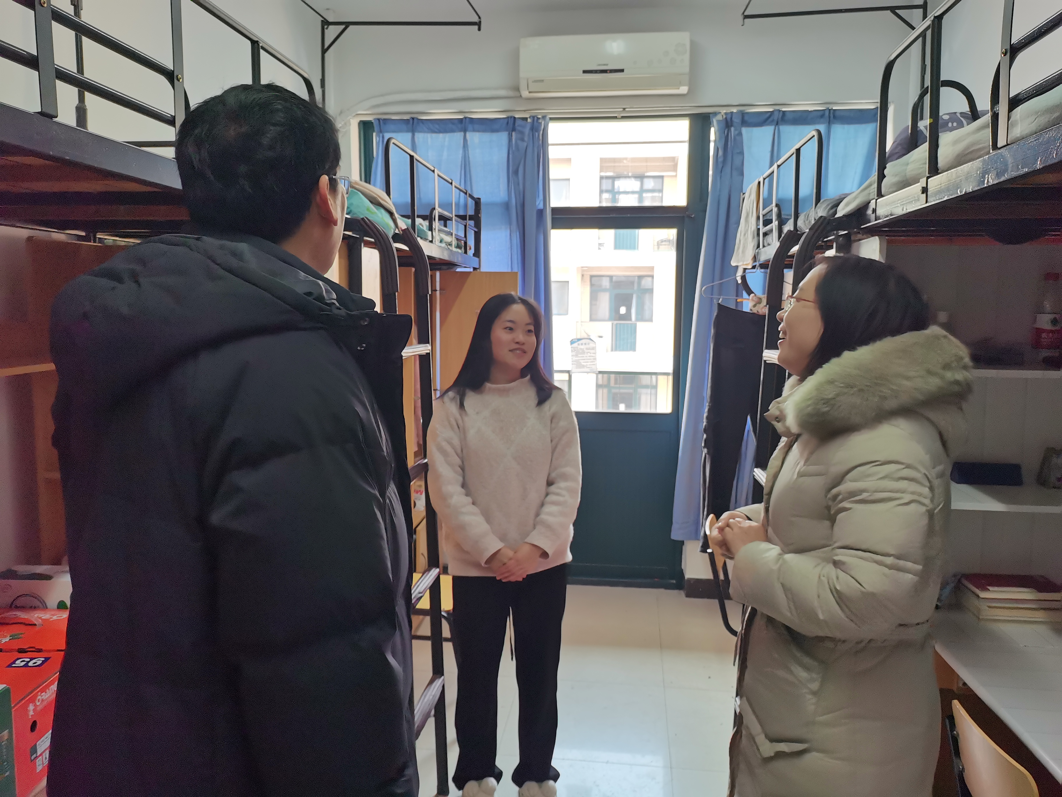 党委书记赵红灿、党委副书记刘宁、2023级辅导员苏辉前往留校学生集中住宿的松二公寓楼,代表学院看望慰问学院寒假留校的汉语言文学2020级卢敏鸽同学和音乐2022级苟灵欢同学,并送上了学院的关怀祝福和新春问候。