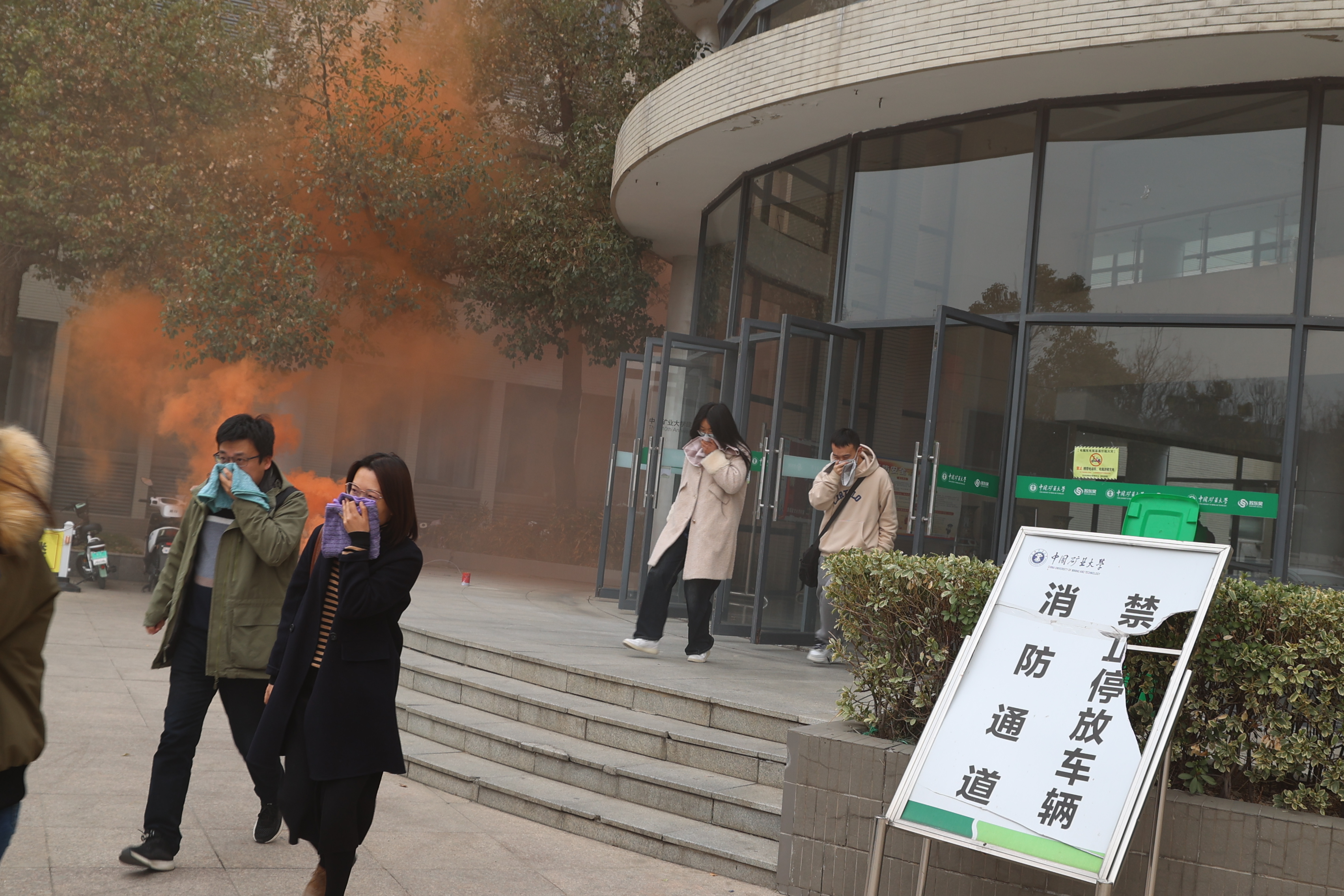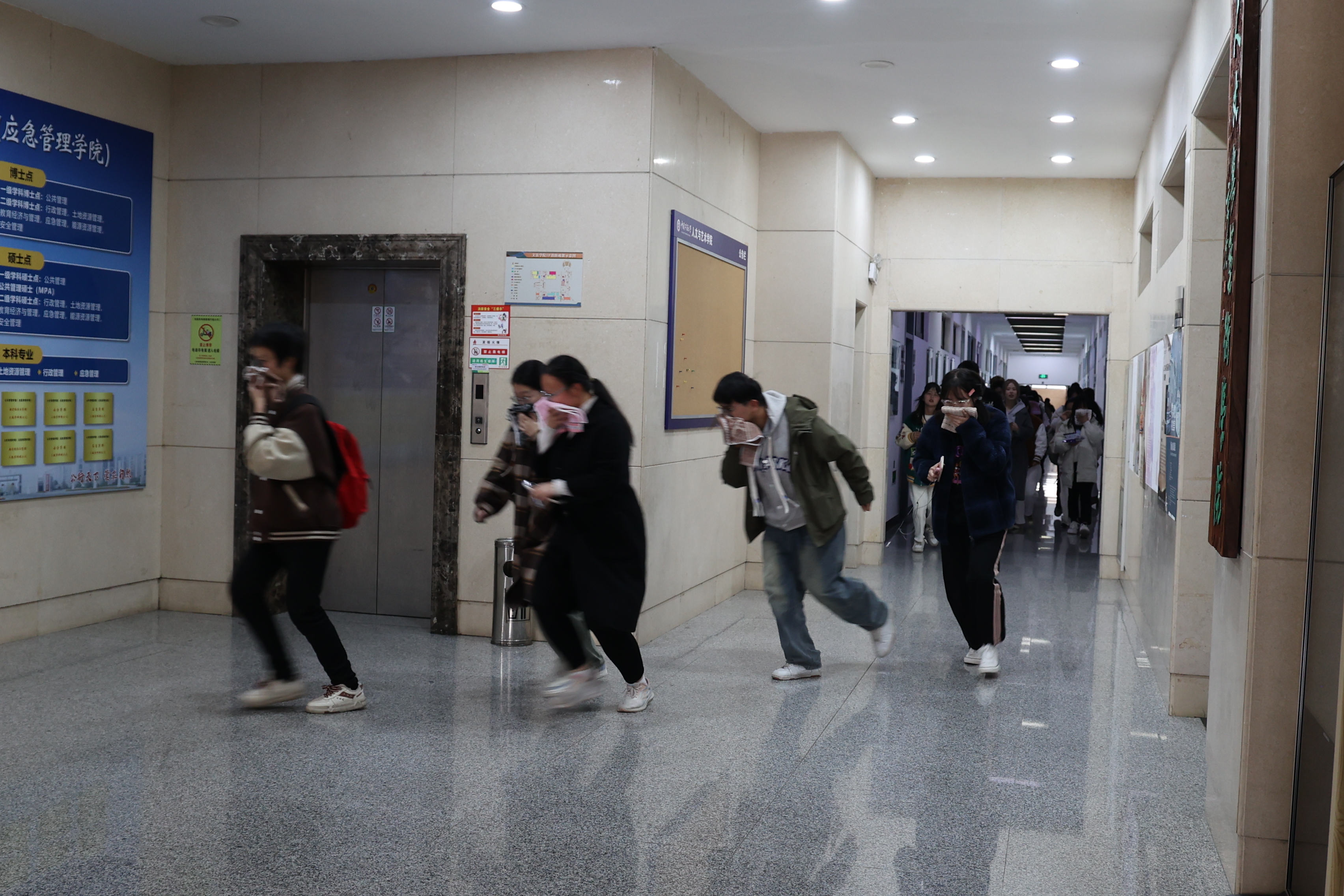 、马克思主义学院、公共管理学院以及外国语言文化学院在文科楼联合开展消防演练活动。学院师生代表近六十人参与了本次演练。
