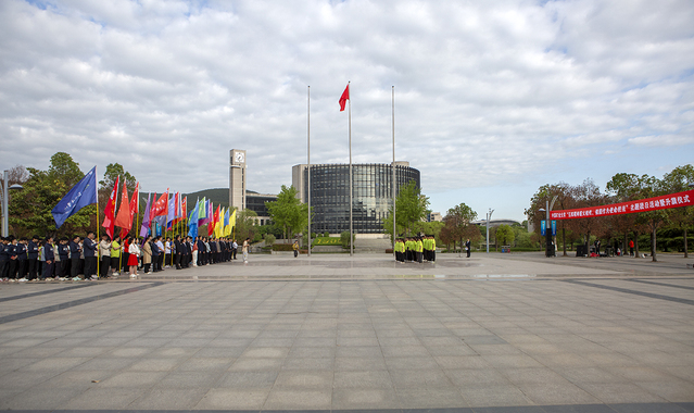 4月29日清晨,学校“五四精神薪火相传,强国作为使命担当”主题团日暨升旗仪式在南湖校区国旗广场举行。活动由安全学院、设计学院和人文学院联合承办。校党委副书记李江涛,校党委常委、组织部部长、统战部部长张万海出席活动,学校党政相关部门负责人,各承办学院领导班子成员,各学院党委副书记、团委书记、青年学生代表及受到表彰的师生代表参与活动。