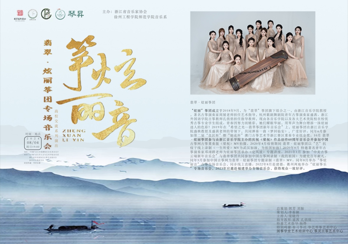 “翡翠筝团"成立于2018年9月,是国内著名的古筝乐团,由浙江音乐学院教授,著名古筝演奏家周展老师担任艺术指导,杭州歌剧舞剧院青年古筝演奏家盛茜、浙江外国语学院古筝教师孔俏俏担任指导教师,现由个音乐学院以及各大艺术类院校在校优秀古筝专业学生组成。此次演出,翡翠筝团带来了多首经典曲目,包括《蝶舞·翩跹》、《绿·风之歌》、《梦回临安》等。这些曲目通过古筝的演绎,展现了中华传统文化的深厚底蕴和无穷魅力。