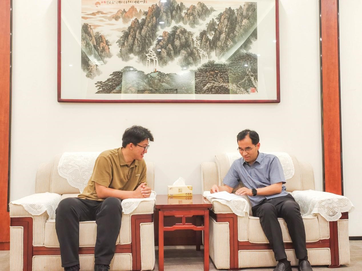 指导老师张瑞亭(左一)与徐州博物馆党总支副书记、副馆长原丰(右一)交流