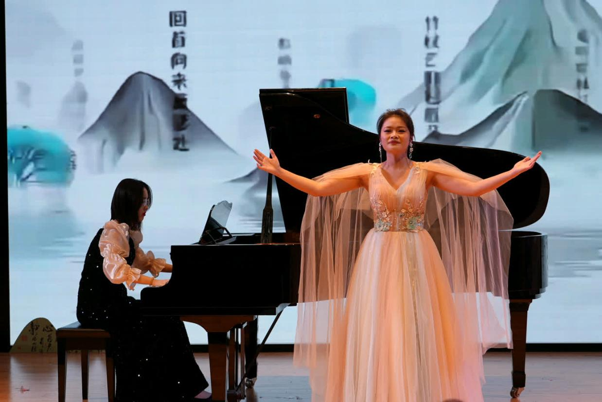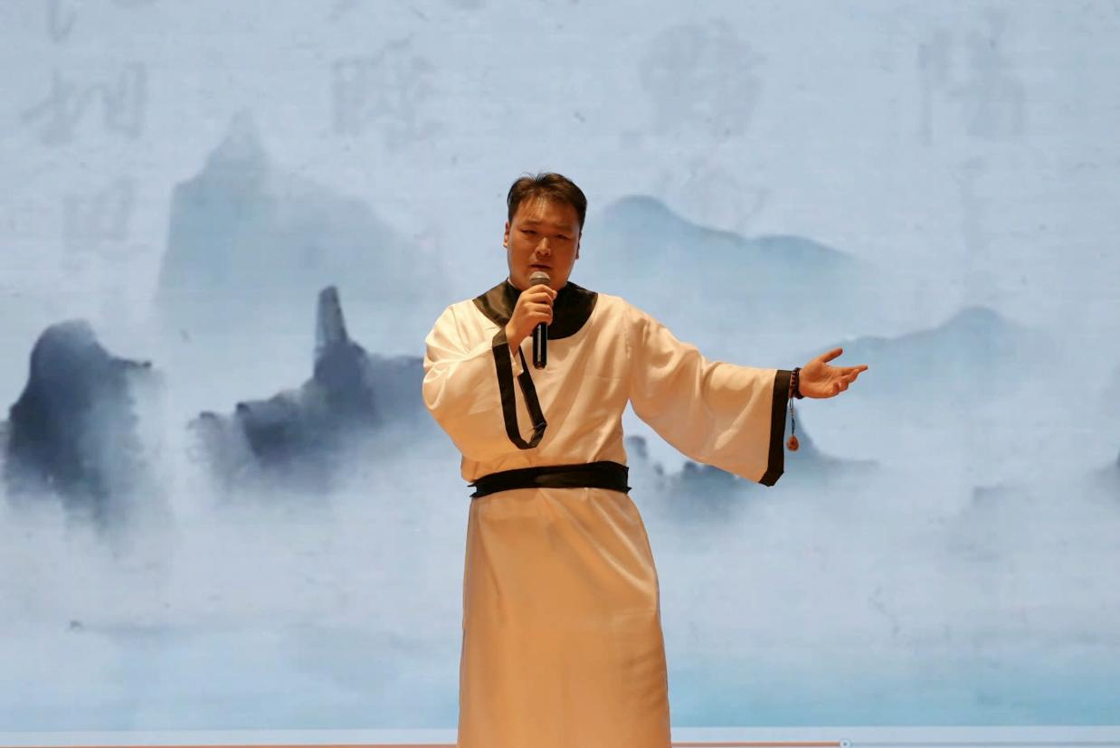 音乐系尤颢然老师,为大家进行部分节目的讲述和介绍。在山川锦绣韵悠扬篇章,美声对唱《一饮尽千钟》唱出了彭城的沧桑古韵和热情豪放,器乐合奏《青玉案•元夕》演绎出辛弃疾领悟的人生哲理,美声独唱《敕勒歌》表现了壮美辽阔的草原风光,美声独唱《大江东去》抒发了苏东坡的不羁与洒脱,诗朗诵《将进酒》诉不尽李白畅快潇洒的诗仙心境。山河是地理风物,也寄托着人生意趣,更象征着家国情怀。诗歌与音韵交融,营造出莺歌燕舞、潺潺流水、高路入云端等不同意境,唱响对新时代“红雨随心翻作浪,青山着意化为桥”锦绣河山的颂歌。