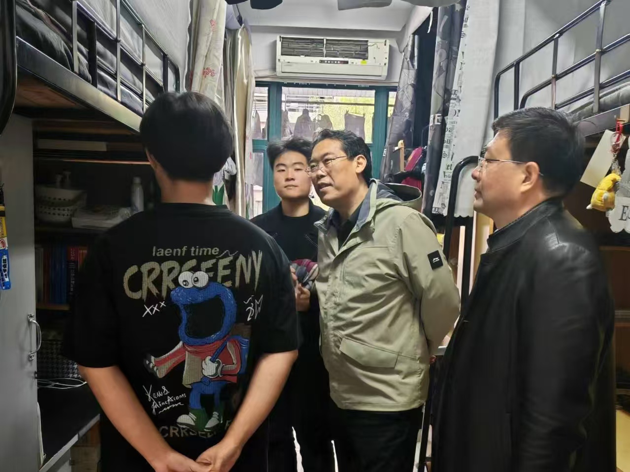 党委书记赵红灿、副院长李广文、学工办主任郭丽婉和24级专职辅导员刘青前往竹苑一号和梅苑二号公寓楼开展安全卫生常态化检查活动。