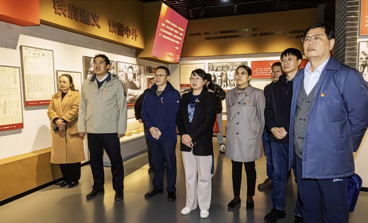 在仪式结束后,赵红灿一行在刘丽的带领下有序参观报史馆序厅、初心厅、发展厅、辉煌厅等四个展厅,跟随讲解员的步伐认真了解《拂晓报》的创办过程和发展历史,感受老一辈无产阶级革命家艰辛的办报历程与艰苦奋斗的革命精神。