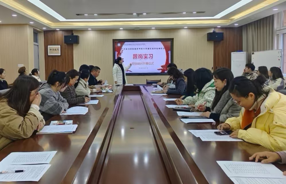 实习启动仪式在徐州市大学路实验学校南校区会议室正式举行。首先,王鹤潼副主任宣读了十五位实习生的师徒结对名单。现场气氛热烈,师徒双方在简单的交流中增进了初步了解,为后续的深度指导打下了坚实基础。随后,陈东副校长详细解读了《师徒结对协议书》的内容,明确了指导老师与实习学生的职责。陈校长指出,指导老师们要在备课、教学设计、课堂管理等方面给予实习学生全方位指导,并通过示范课和教研活动帮助实习生深度理解教学规律;实习学生们则需虚心请教,严格履行实习要求,踏实完成教学任务。接着,在简短而庄重的签约环节中,十五位实习生与各自的指导老师正式签订了《师徒结对协议书》,实习之旅由此拉开序幕。