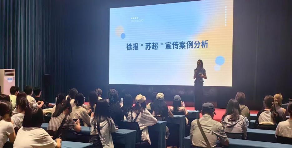 实习伊始,师生一行参观了徐州日报报史馆,了解该报纸从创刊至今的沿革与媒体融合进程。讲解员还介绍了“汉风号智媒体管理平台”中的“云创智文”功能和“视觉江苏”图片采集平台,展现了AI技术赋能媒体工作的具体实践。参观结束后,徐州报业集团记者丹丹和文字编辑李莎莎为实习团队一行带来主题讲座《徐报“苏超”宣传案例分享》,她们分别从现场报道技巧、新闻底层逻辑及文字撰写要点等方面,分析“苏超”现象级传播的核心逻辑,为学生的实习实践提供鲜活案例。